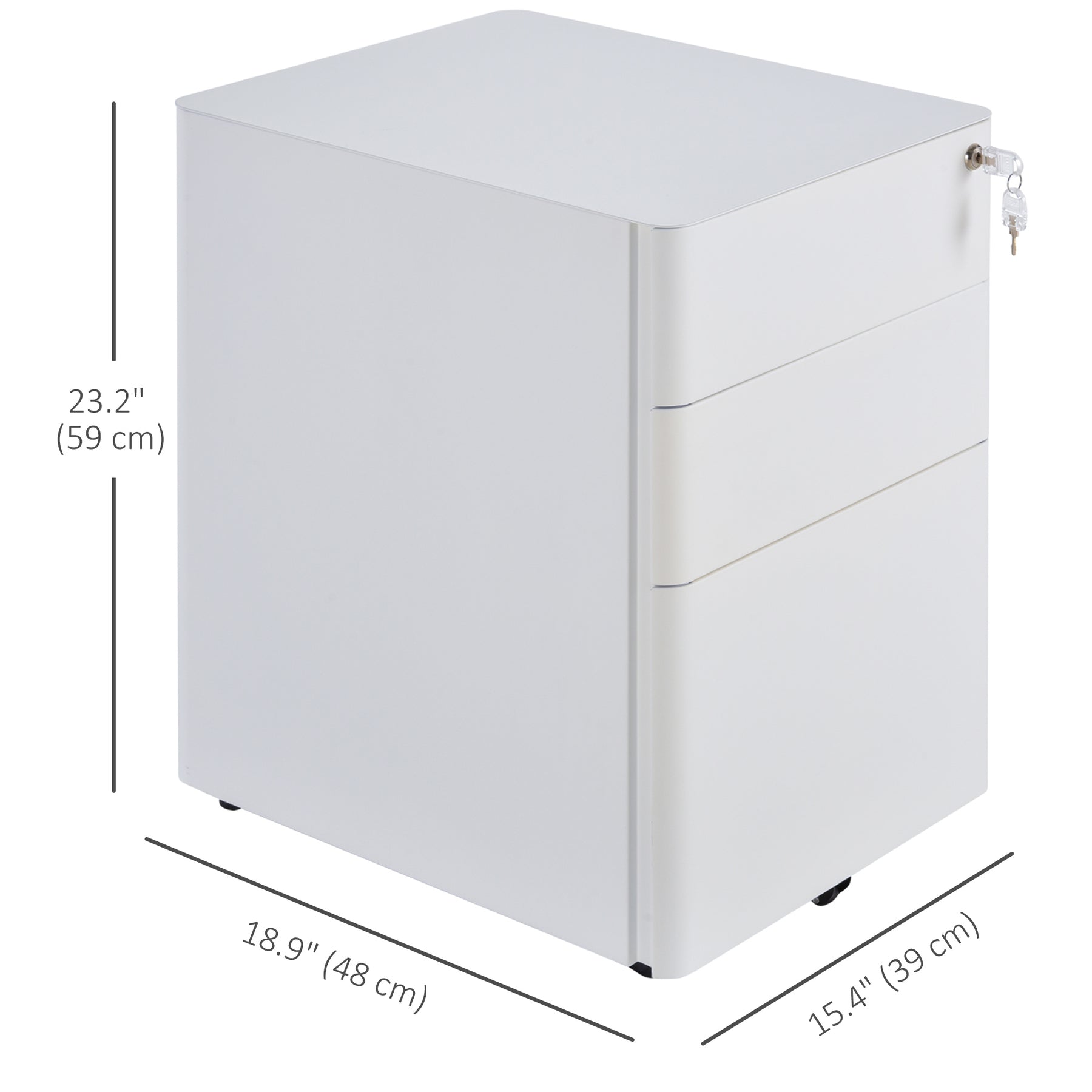 Maximize your space with the Vinsetto filing cabinet with lock, a sleek office drawer cabinet that offers spacious storage with three drawers, doubling as a printer stand with storage. Enjoy organized ease with adjustable rail for three different file sizes and a lock to secure your essentials. What's more, its compact design fits neatly anywhere and rounded corners prevent accidental bumps, making it a great office ally.