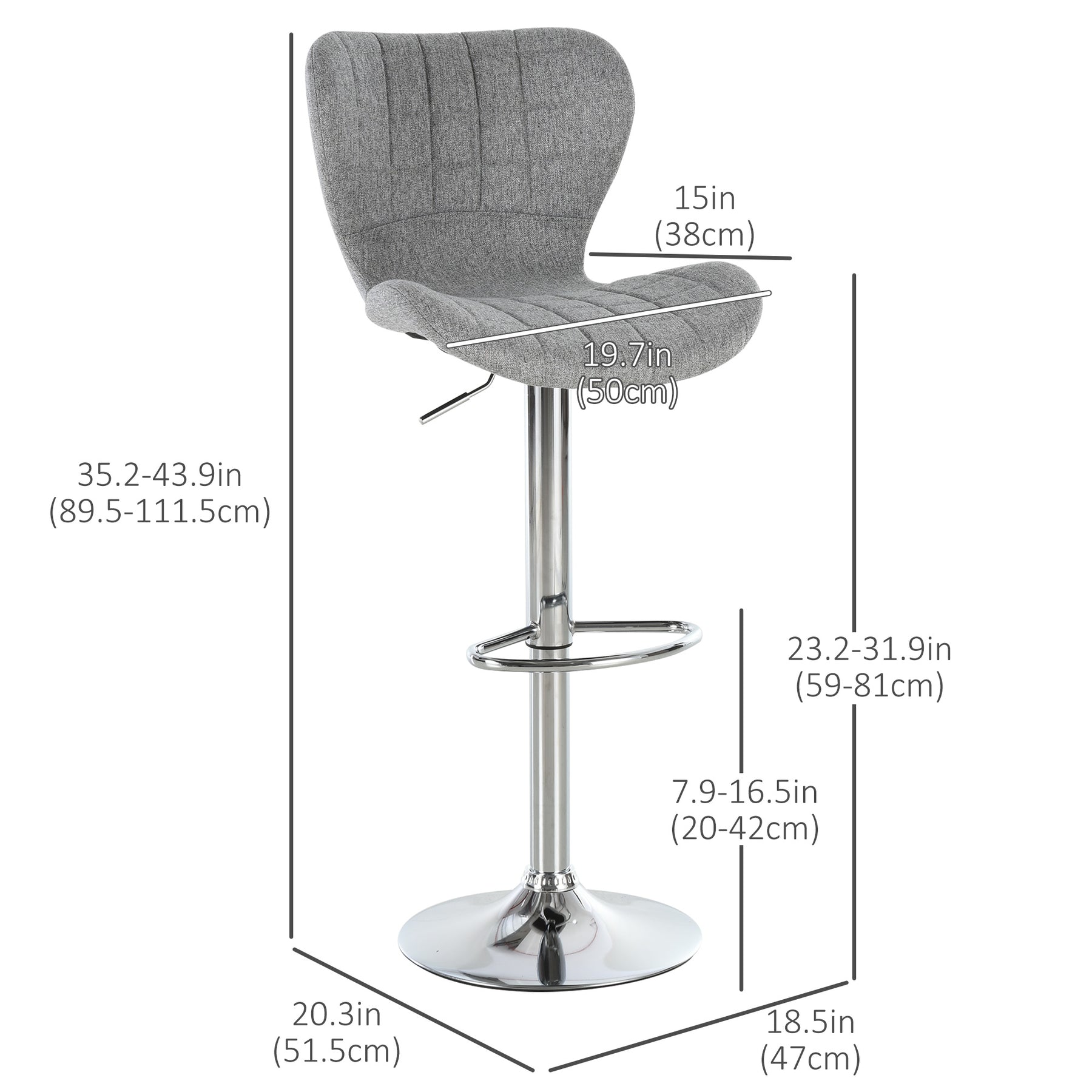 - • Seat Dimension: 19.7" W x 15" D x 23.2" -31.9" H (50 x 38 x 59-81 cm)