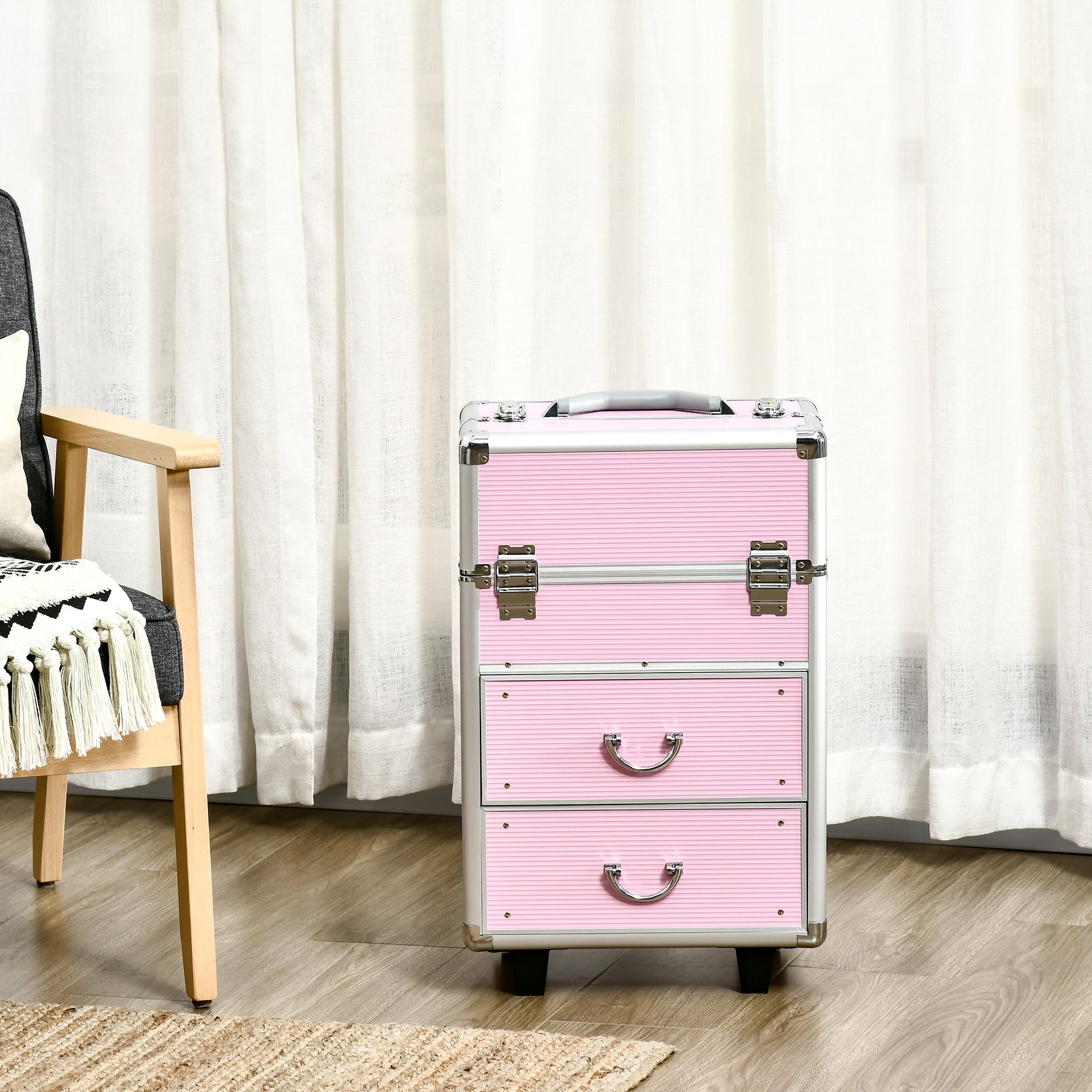 Travel with greater peace of mind with this locking travel makeup organizer from HOMCOM. It comes with a top lock and key to ensure that you are the only person with full access to your inventory. Both you and your makeup will thank you when you have an organized storage place at home and on the go. Spend less time searching for the makeup tools you need. Instead, keep them organized and in the same place with our makeup travel case.