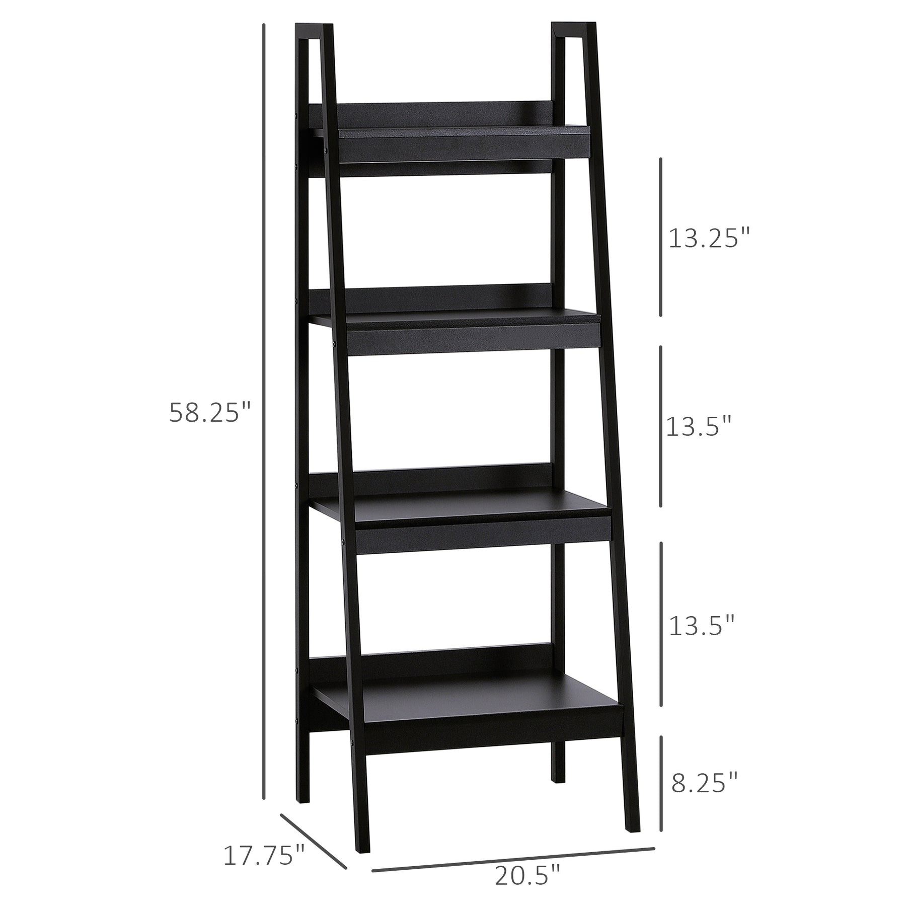 - • Shelves Dimensions: 19"Lx8.25"Wx 8"H, 19"Lx10.5"Wx13.25"H, 19"Lx13"Wx13.5"H, 19"Lx15.25"Wx13.5"H
