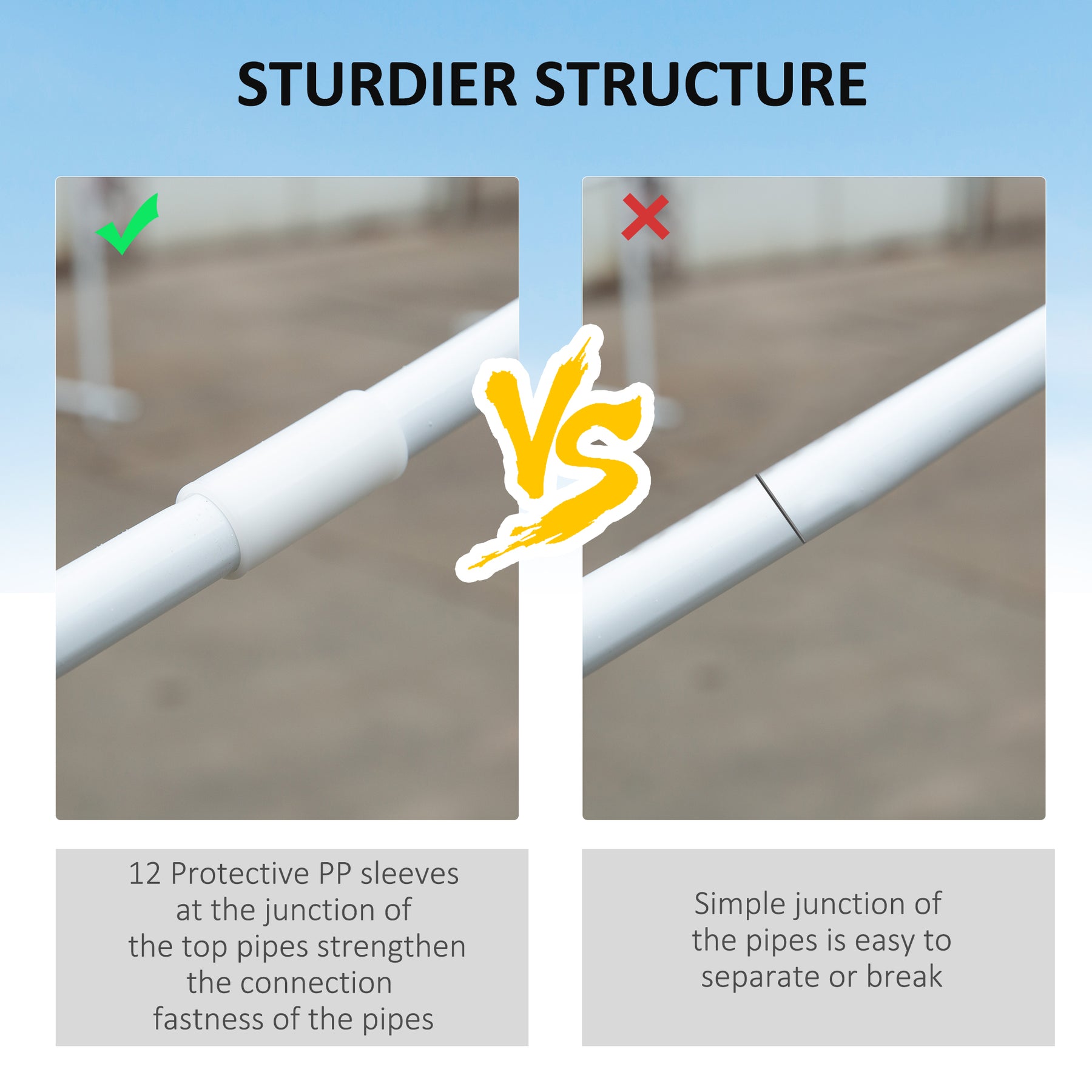 Choose this Outsunny backyard tent to create an excellent spot for any outdoor occasion this season. It features a large hexagon design with removable walls, allowing you to switch from an open to a closed atmosphere when desired. The included guy ropes and ground nails add stability, while the fastening zip on the main door allows for convenient entry and exit. The wedding tent has transparent windows, providing clear visibility inside and outside.