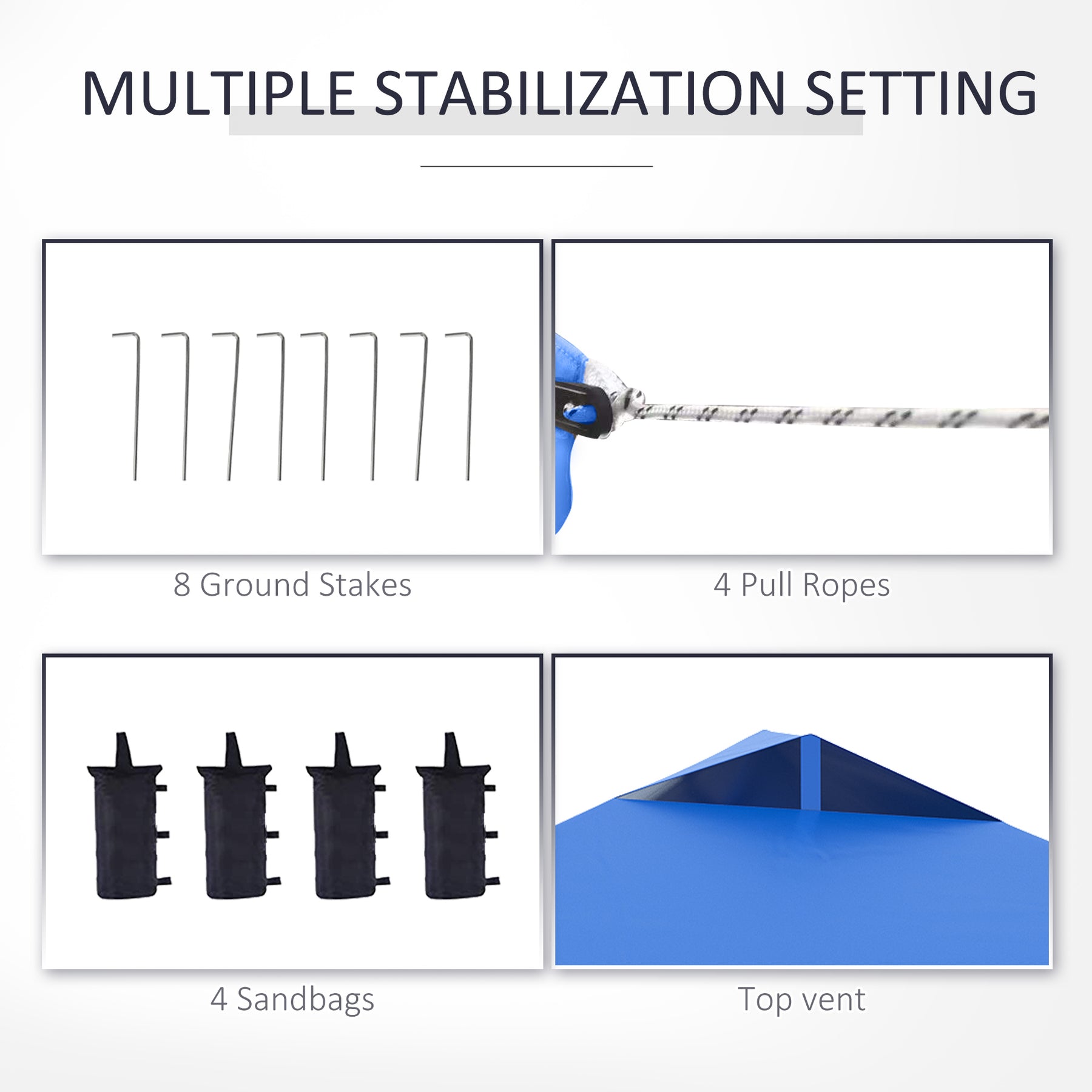 Our Outsunny folding party tent is terrific for outdoor gatherings and camping trips. It's simple to put up: the gazebo goes up in minutes. The outdoor tent canopy includes a powder-coated metal frame, and Oxford fabric with silver coating protects you from direct sunlight. 3-level adjustable height meet your various needs. When not using, store it in the handy wheeled bag and transport it almost effortlessly. Invite some friends and relax under the large portable tent to enjoy a leisure time.