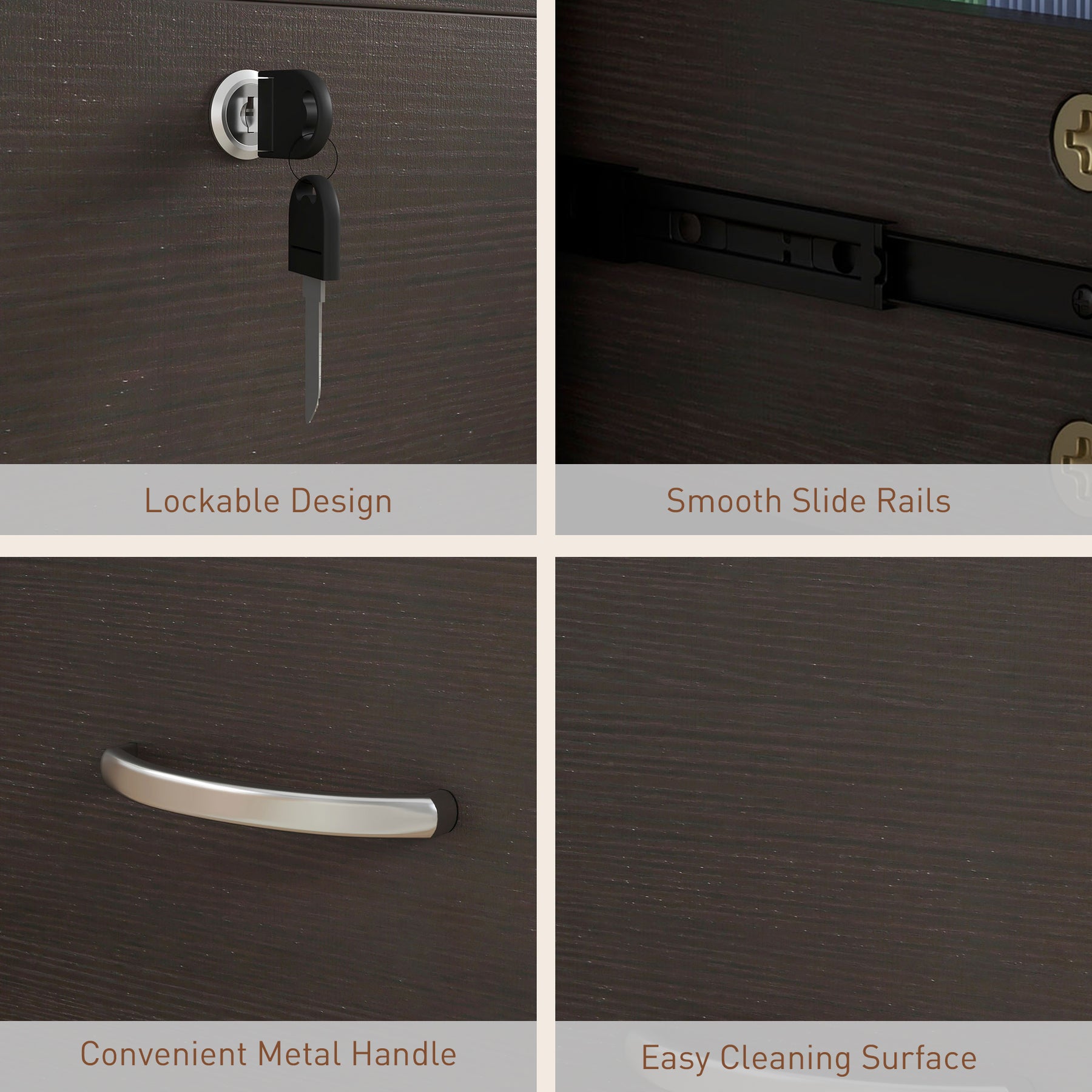 This stylish filing cabinet from Vinsetto can help you maximize utilization of the space considerably to store countless files. The 2 large drawers provide you with ample storage for your files. The upper drawer with lock and 2 keys secures your privacy and important files, while the lower without lock for easy access. Each drawer has 2 sets of letter size bag hangers for space-saving and convenient use. Check out the storage cabinet with drawers, never have trouble finding important files.