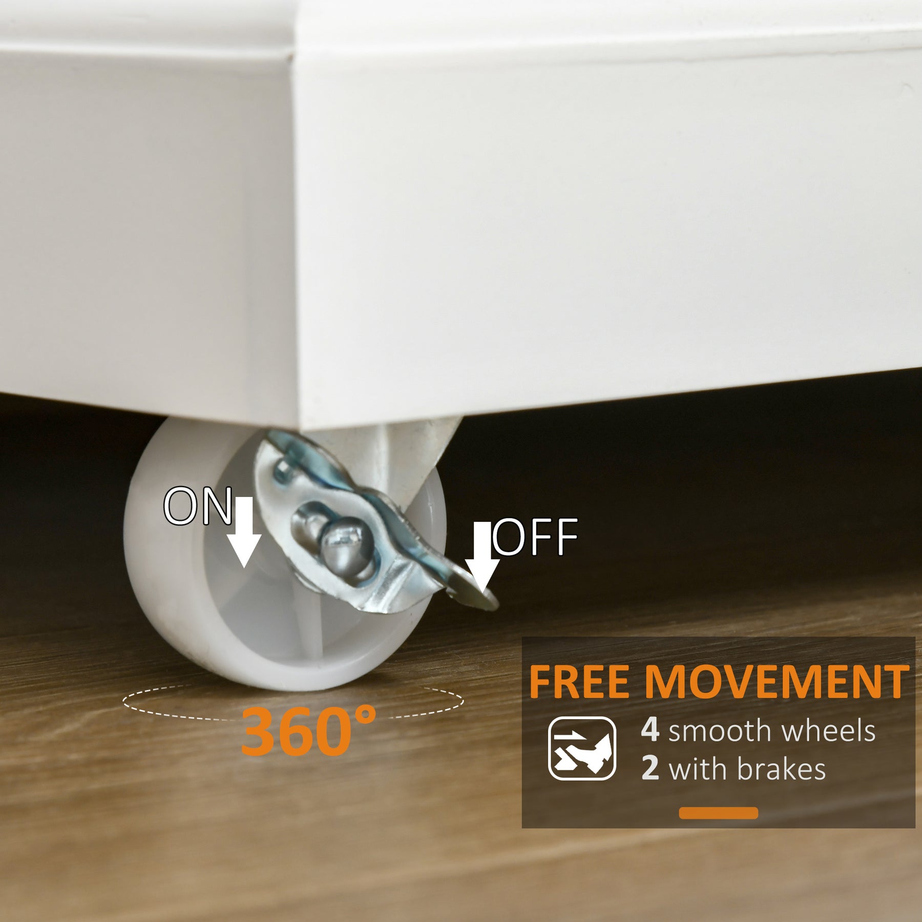 This kitchen island cart well fits limited spaces and can be moved to wherever you need it. The convenient drop-leaf adapts to both large and small spaces. A drawer and a double-door cabinet and a towel rack provide ample space for supplies and accessories. Easy-roll wheels allow you to move wherever it is needed most. Solid rubberwood tabletop and MDF panels ensure sturdy construction and easy cleaning.