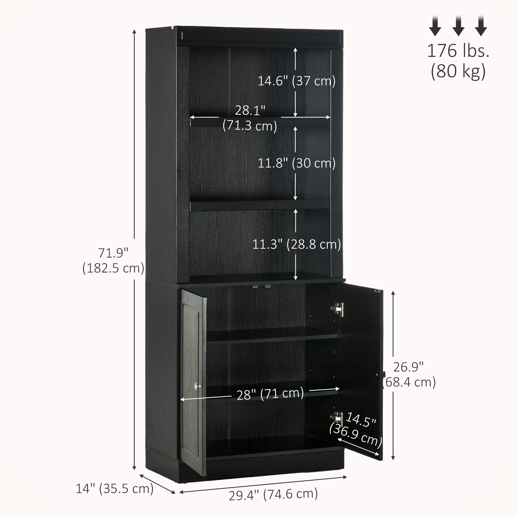 - • 6-level adjustable shelves indoor cabinets allow for display and storage of food boxes, dishes, bathroom accessories, books, etc.