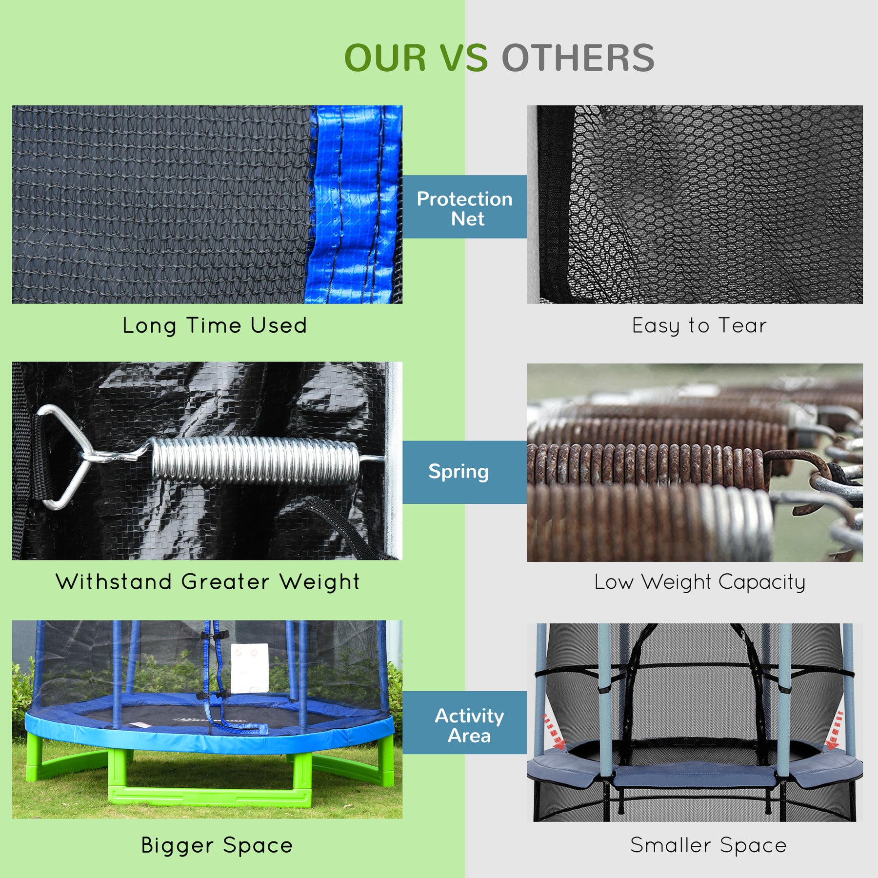 - • Trampoline height: 15.75"(from ground)