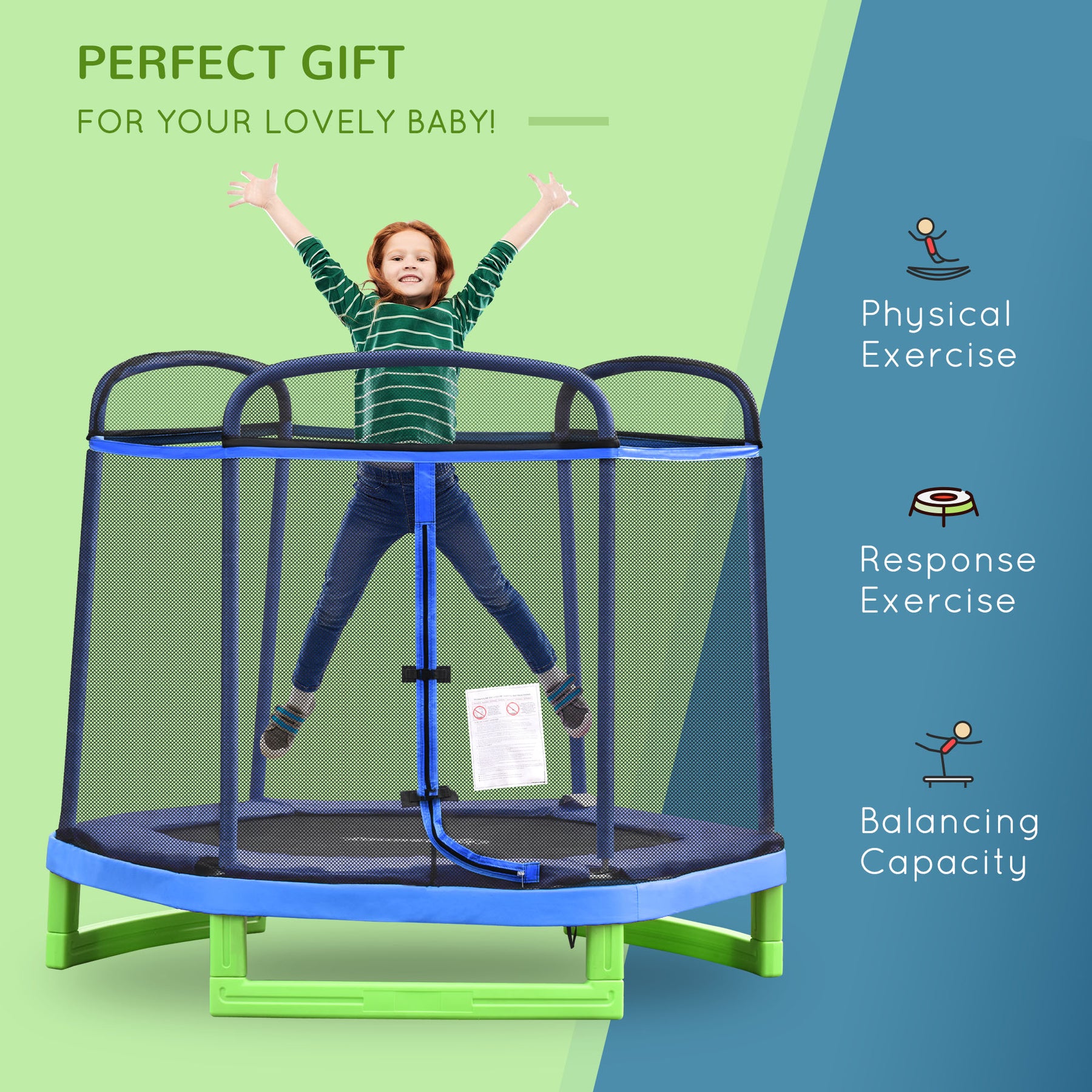 Looking to get your child off the couch? This trampoline from Outsunny with an enclosure net will be a fun solution to draw kids to natural exercise routines. The children's indoor jumper will allow a full range of exercises, resulting in increased bone strength, muscle density, and weight loss. Continued use will make it easier for kids to attempt challenging sports such as basketball. The mini trampoline is fun, and designed to naturally motivate vital exercise habits in your children.