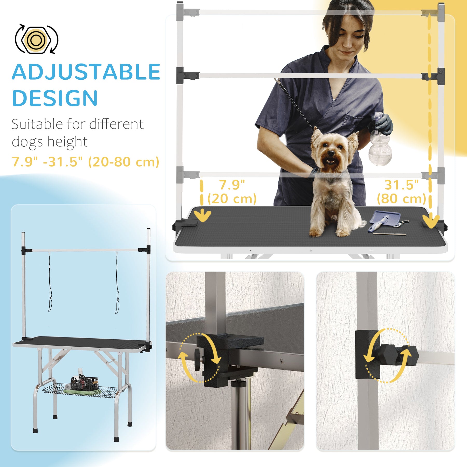 Whether it's for washing, trimming their fur/hair or getting them into tip-top shape, this black PawHut grooming table provides you everything you need for your pet grooming needs. Made from metal, the frame is crafted into a large adjustable design which handles up to 220lbs in weight, making it suitable for many dogs of different sizes, with a large non-slip rubber tabletop from them to stand still comfortably over long periods of time.
