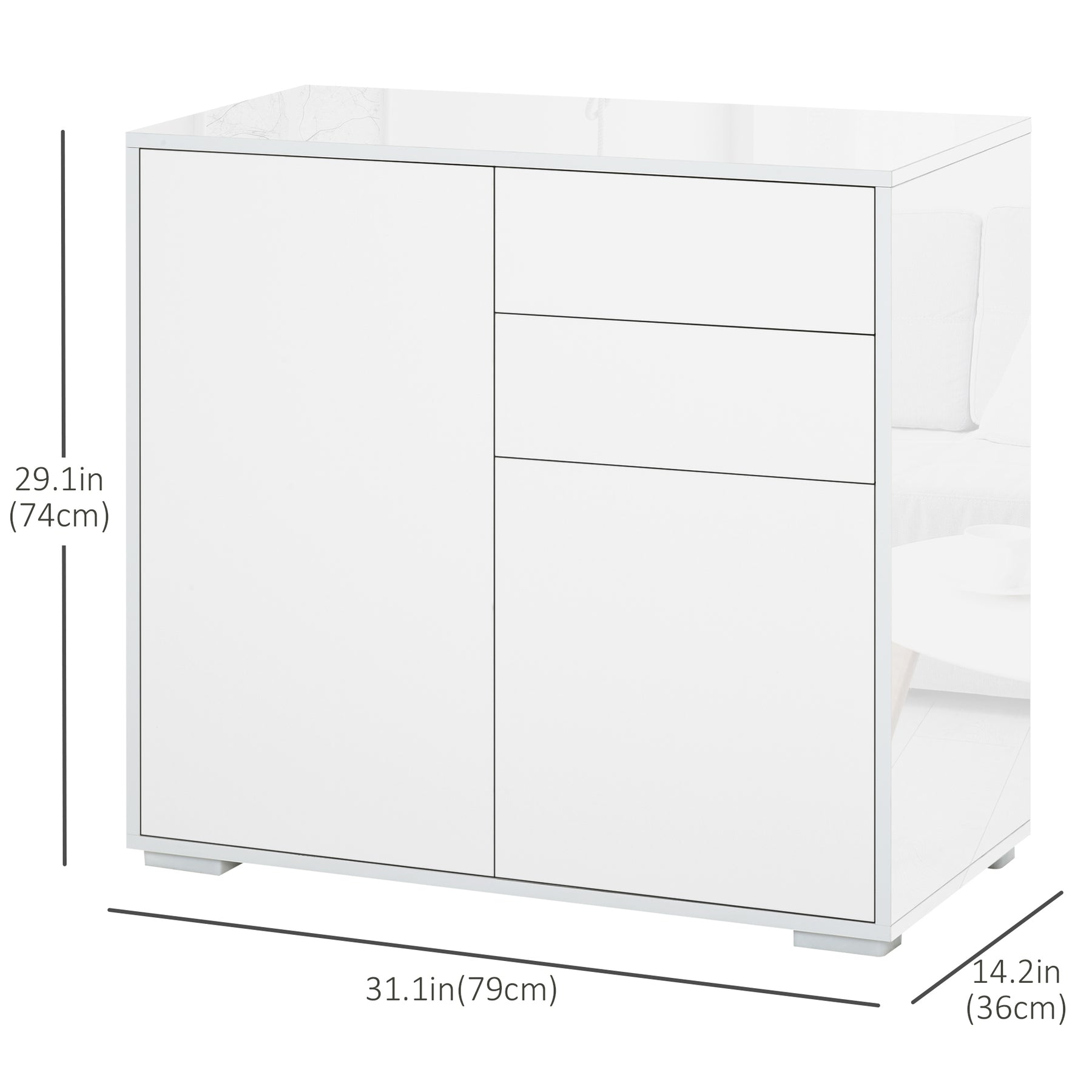 - • Overall Dimension: 31.1" L x 14.2" W x 29.1" H (79 x 36 x 74 cm)