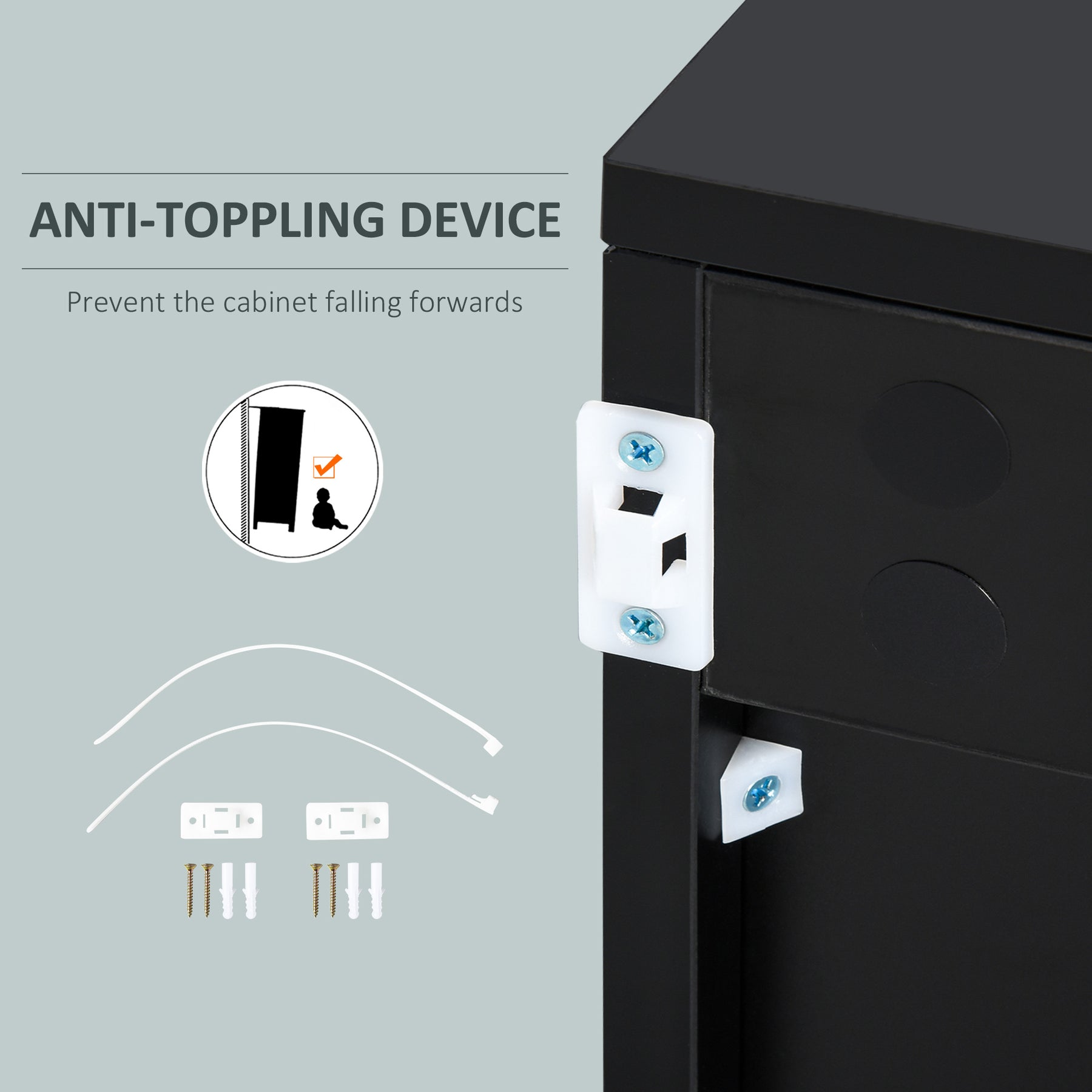 - • Reliable particleboard structure with safe anti-tipping straps