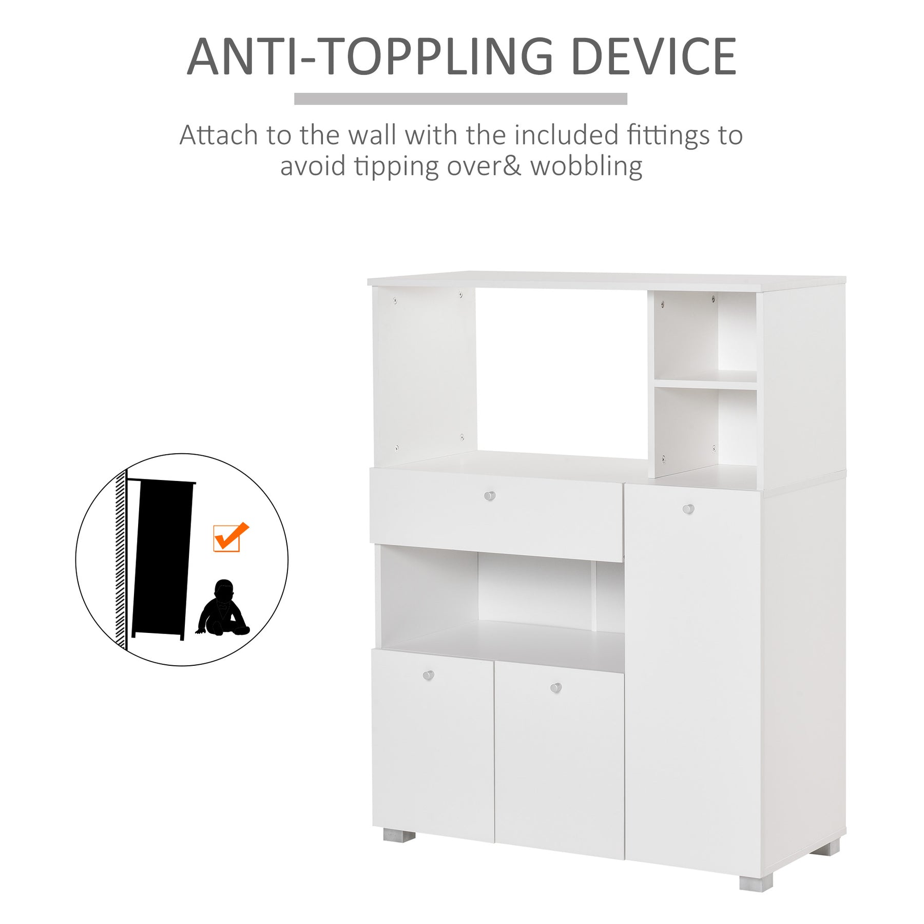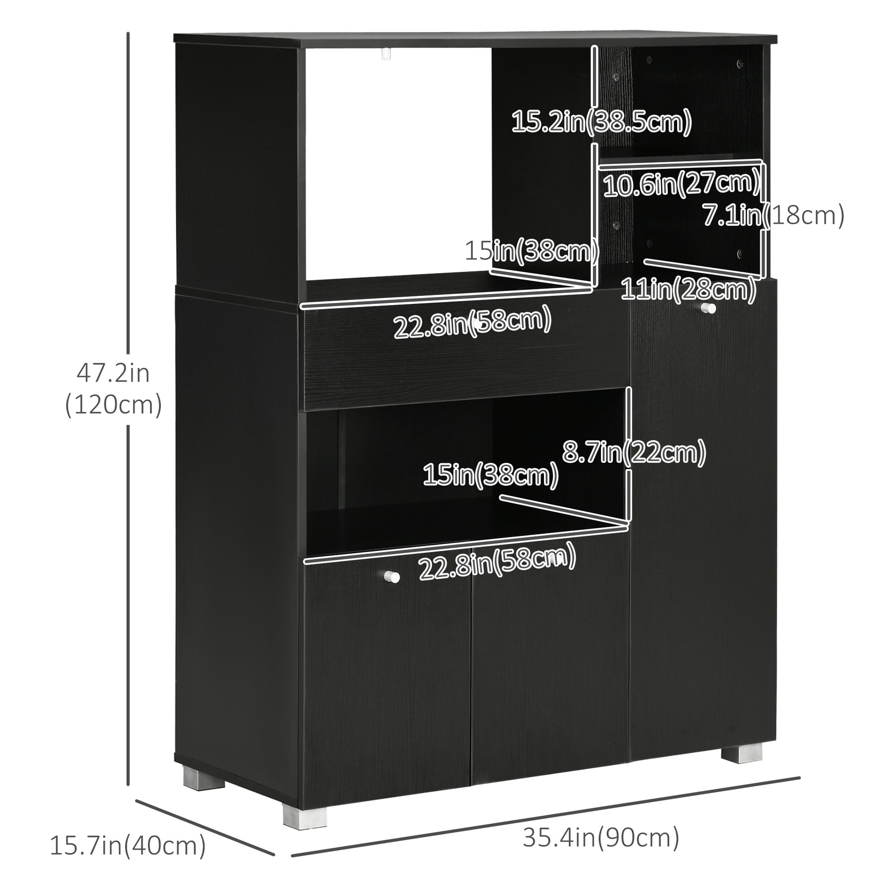 Creating a stylish storage option has never been so easy! This microwave cabinet with storage and drawers from HOMCOM fits nicely with any decor. It can be used in the kitchen, pantry, closet, garage, or bathroom to create stylish additional storage. Ample storage cabinets, drawers, and an open countertop shelf provide plentiful storage in this compact shelf with doors.