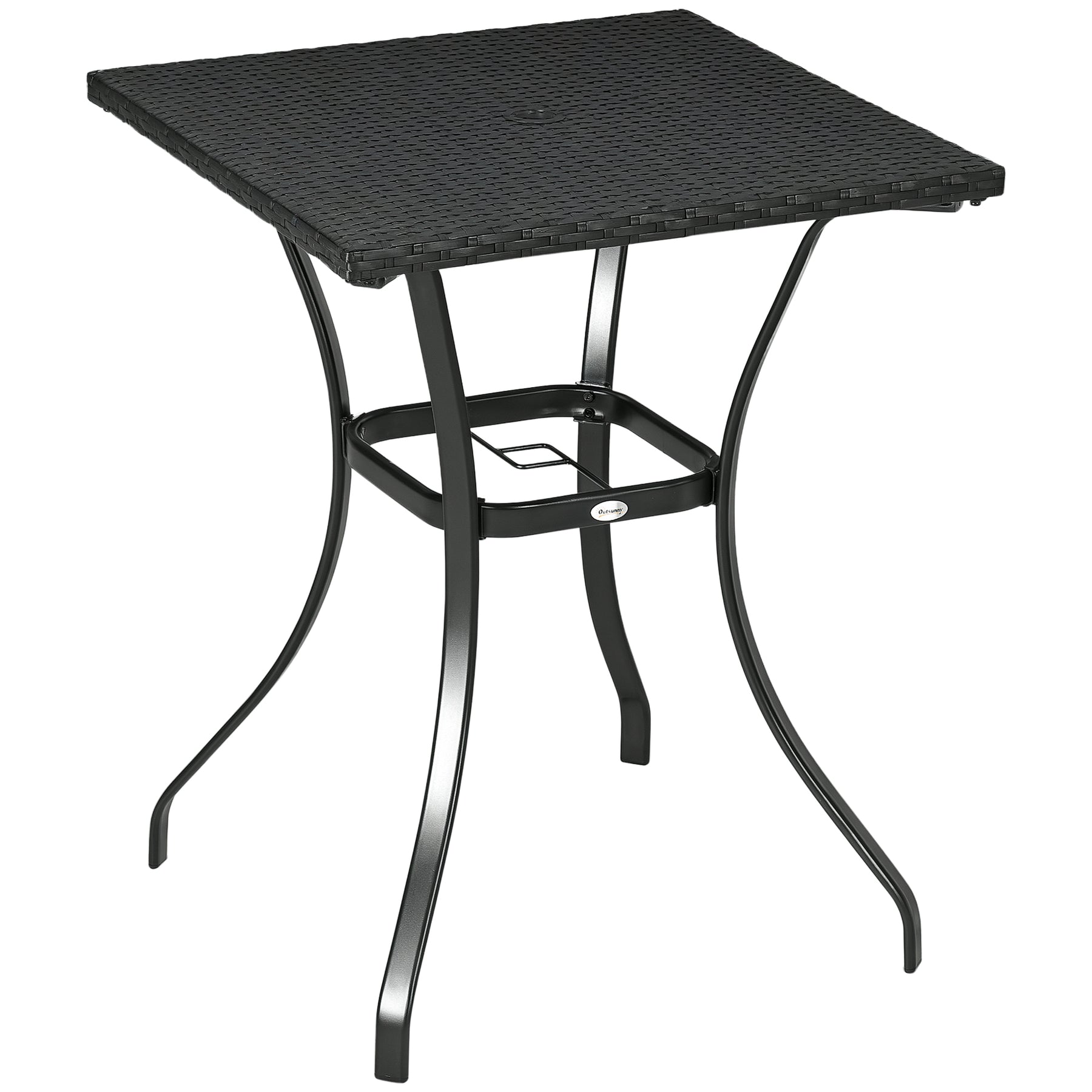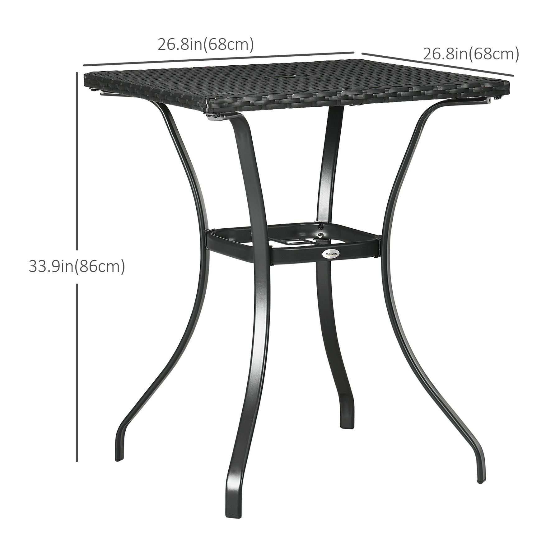 Seeking a resilient, low-maintenance outdoor table with an umbrella hole? Look no further than Outsunny's patio table. With a robust steel frame and full woven rattan, this table complements any outdoor space - your backyard, front yard, balcony, garden, or deck. Bring some excitement to your outdoor area today!