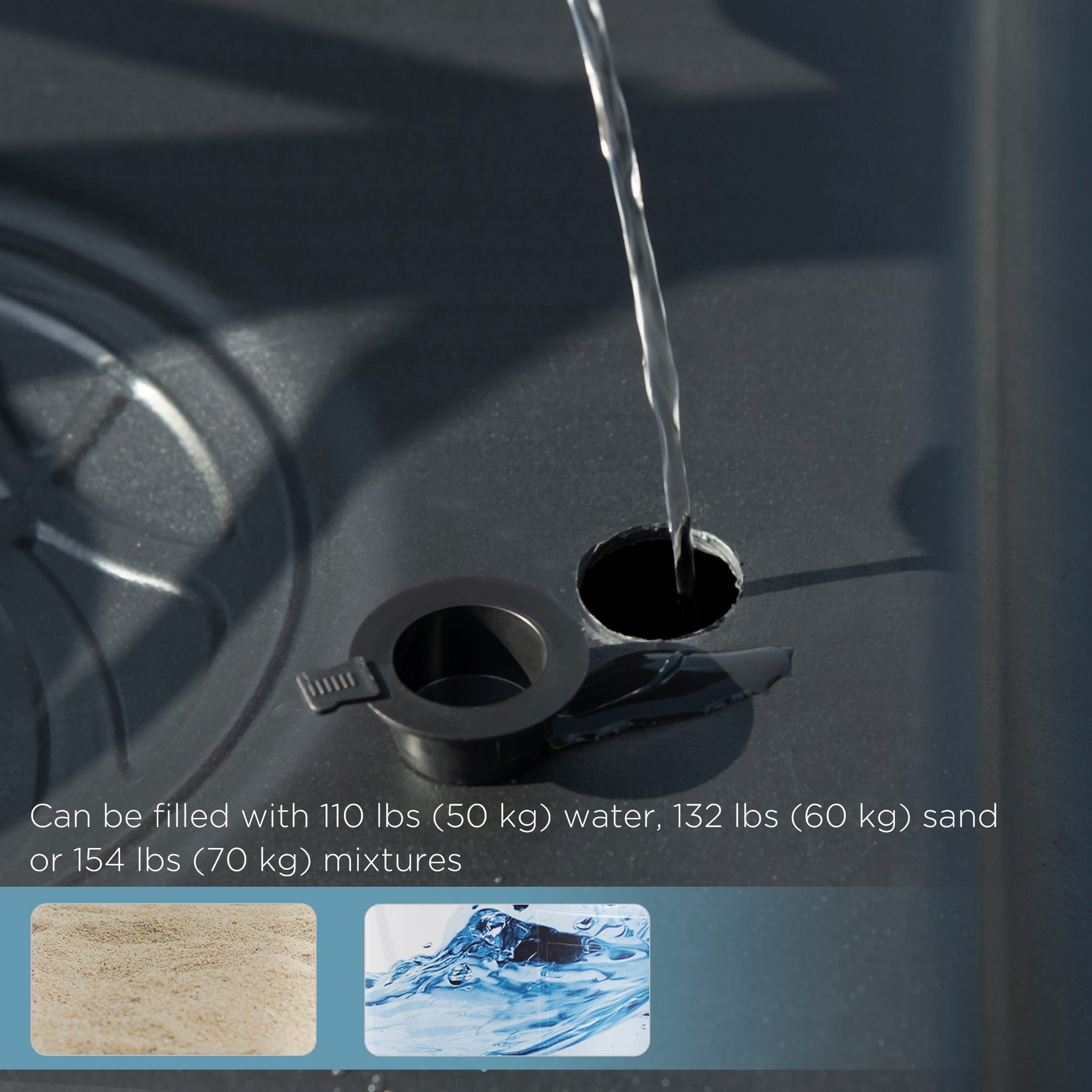 - • Base capacity: 110 lbs/50 kg water, 132 lbs/60 kg sand or maximum 154 lbs/70 kg water and sand