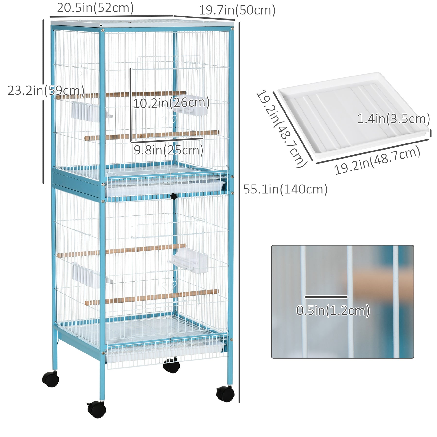 - • Bird Cage Dimensions(each layer): 20.5" W x 19.7" D x 23.2" H (52 x 50 x 59 cm)