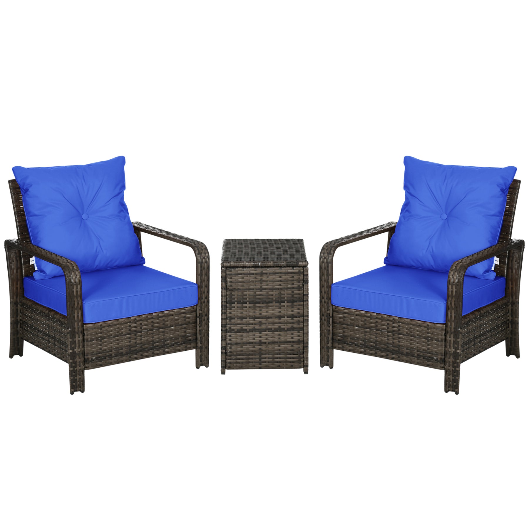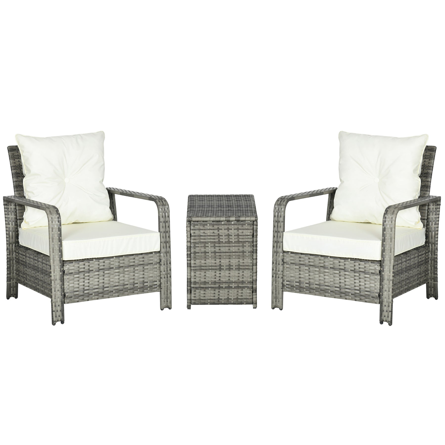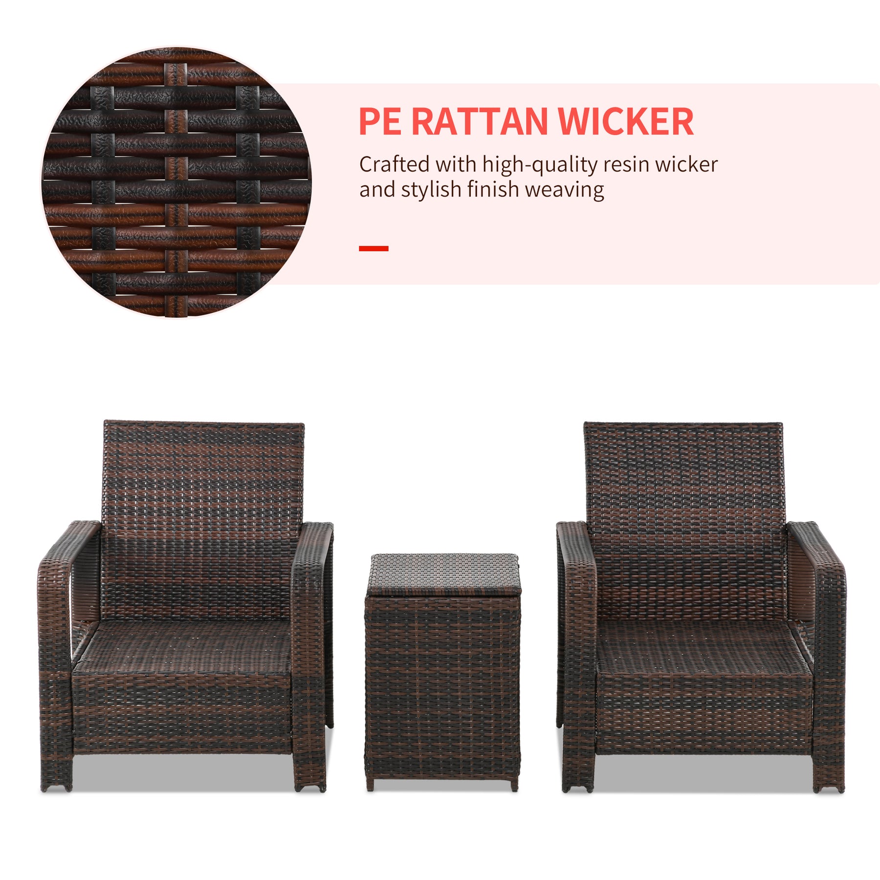 Invite the perfect spot to relax outdoors with friends and family with this three-piece sofa set from Outsunny. This balcony furniture formed of two armchairs and a matching table - each crafted into a sleek, modern design, with the bodies crafted from handwoven PE rattan and supported by a steel frame. Padded seat and back cushions provide comfort, with the matching table with storage providing space for anything you need close. Stylish and comfortable- what’s not to like?