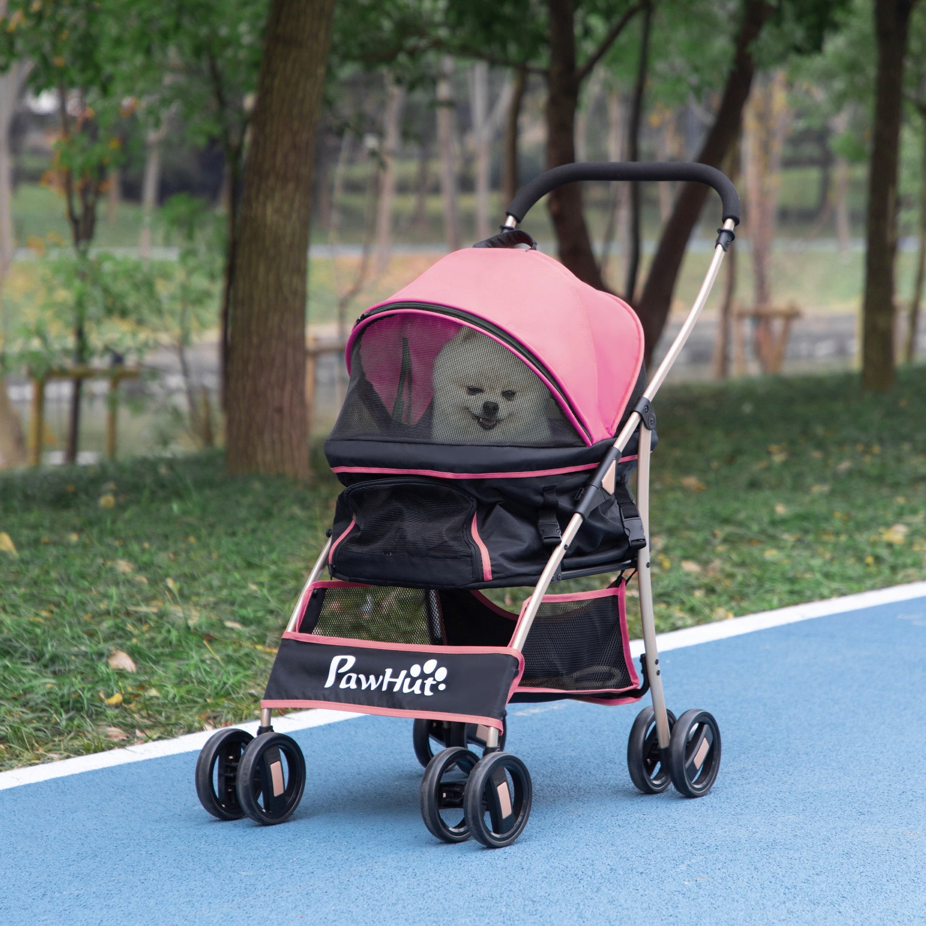 With this PawHut dog strollers for small dogs, you can take pets out with little fuss. They'll sit in a big buggy as the wind flows through the netted windows to keep them cool – the leash keeps them secure when inside. Not just a cat stroller, it can be used as a carry bag, ensuring pets have a comfortable and familiar space wherever they are. When done, fold the pram for simple storage. Made with a steel frame, it can hold up to 22lb(10 kg) – the perfect buggy for extra small and small dogs.