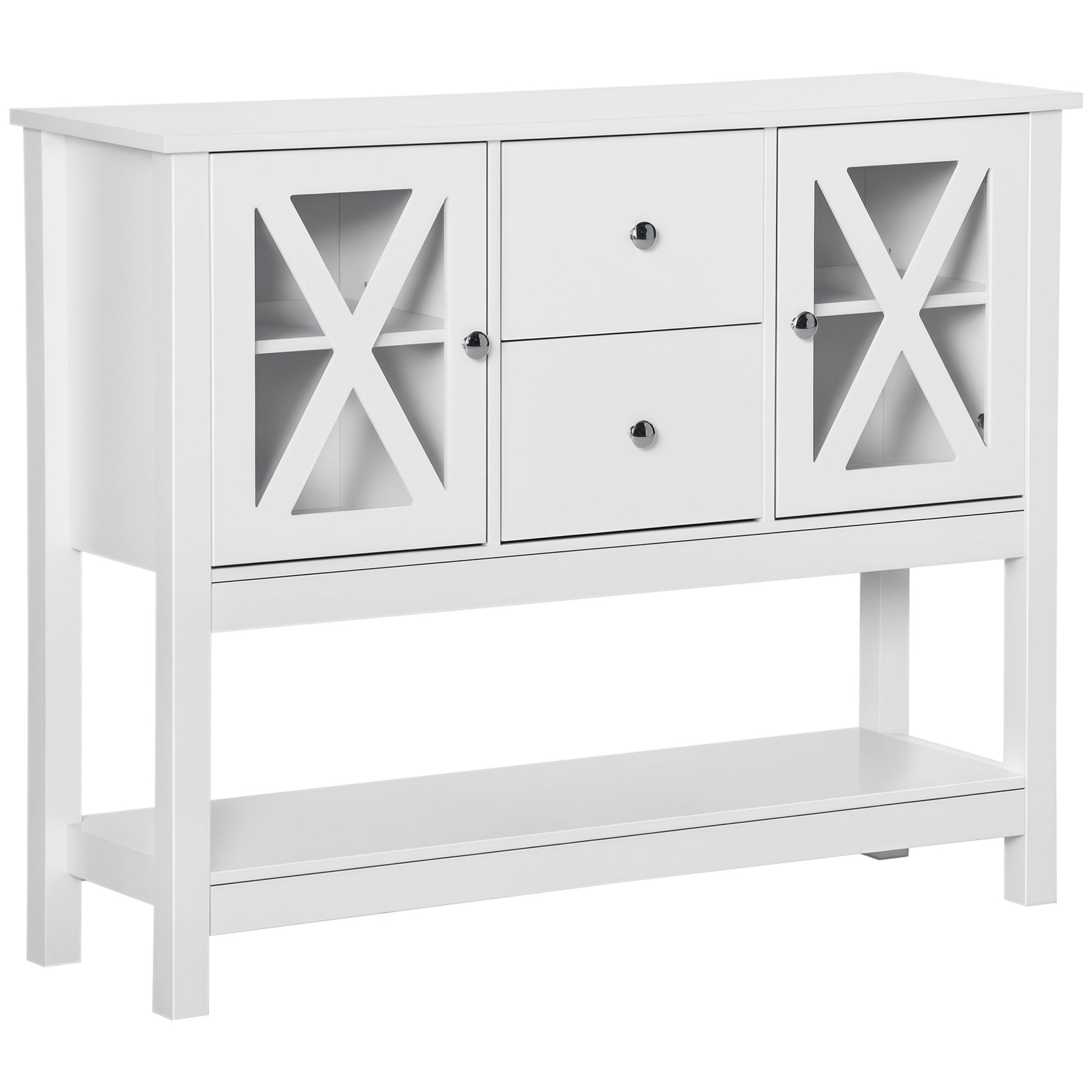 Quickly add the storage space you need and keep everything in order with this storage sideboard from HOMCOM. The front doors have an X design which makes a bold statement. At the same time, the buffet unit has two drawers and two cabinets that offer a versatile storage solution. Customize your home space with the adjustable interior shelf to meet your storage needs.