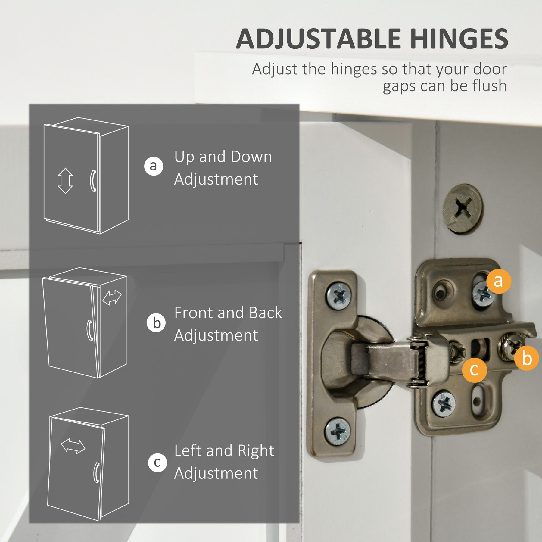- • Inside adjustable door hinges are included to maintain alignment