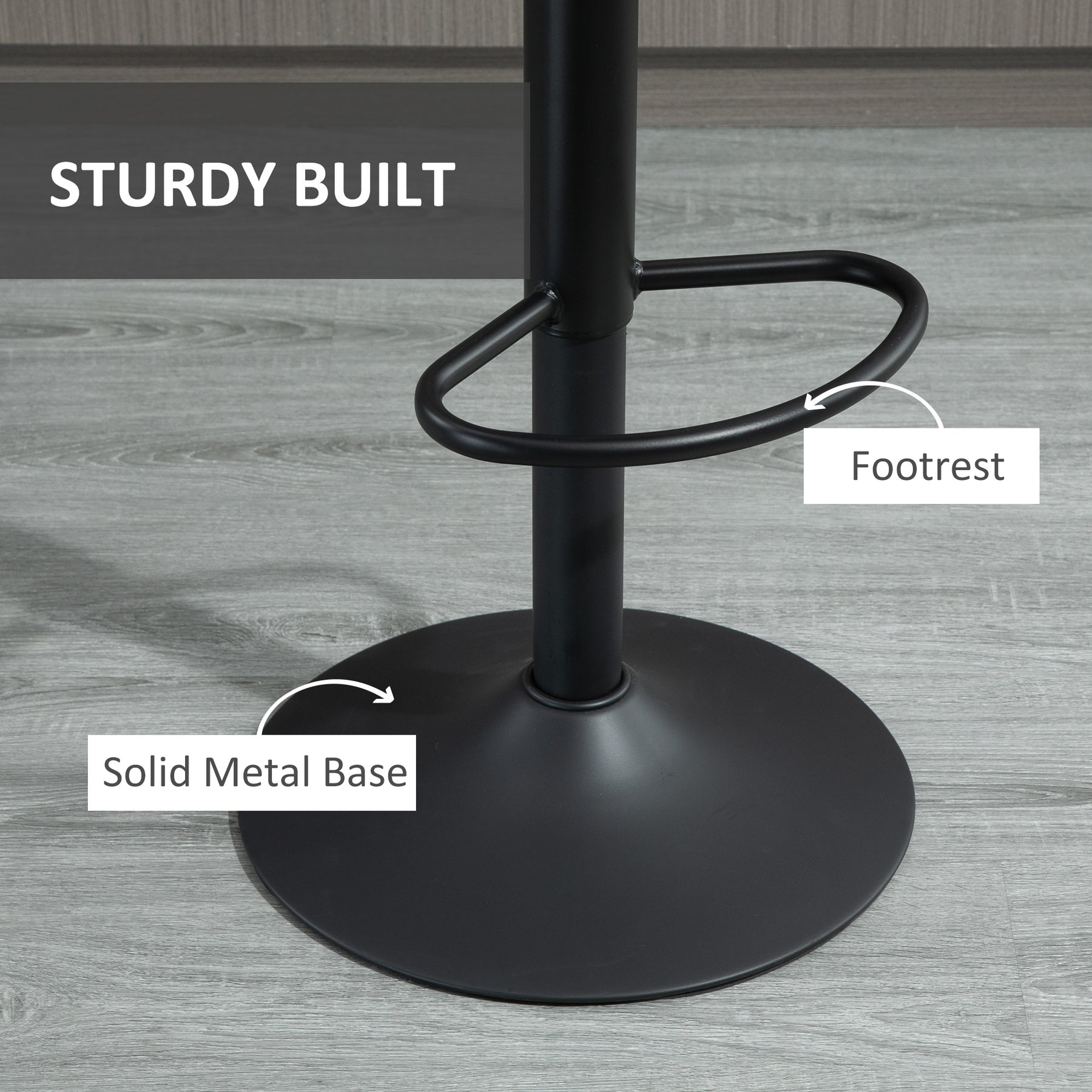 Elevate your home entertainment space with these elegant bar stools from HOMCOM. This set of two boasts a cohesive appearance that will enhance the look of any room, blending seamlessly with any interior design style. Enjoy comfortable seating with each swivel bar stool's relaxed, armless design, while the upright back offers ample support for your posture.