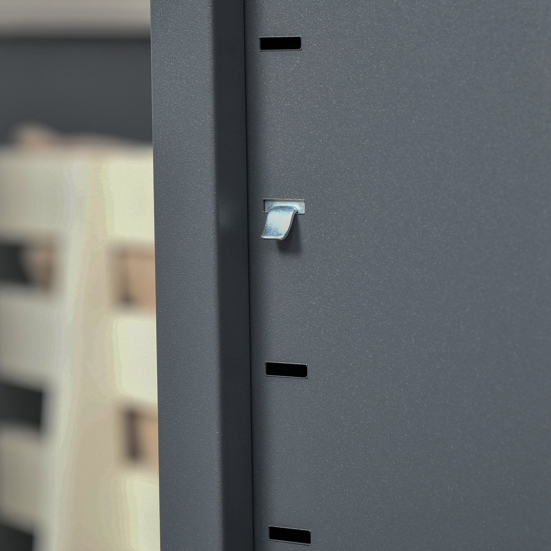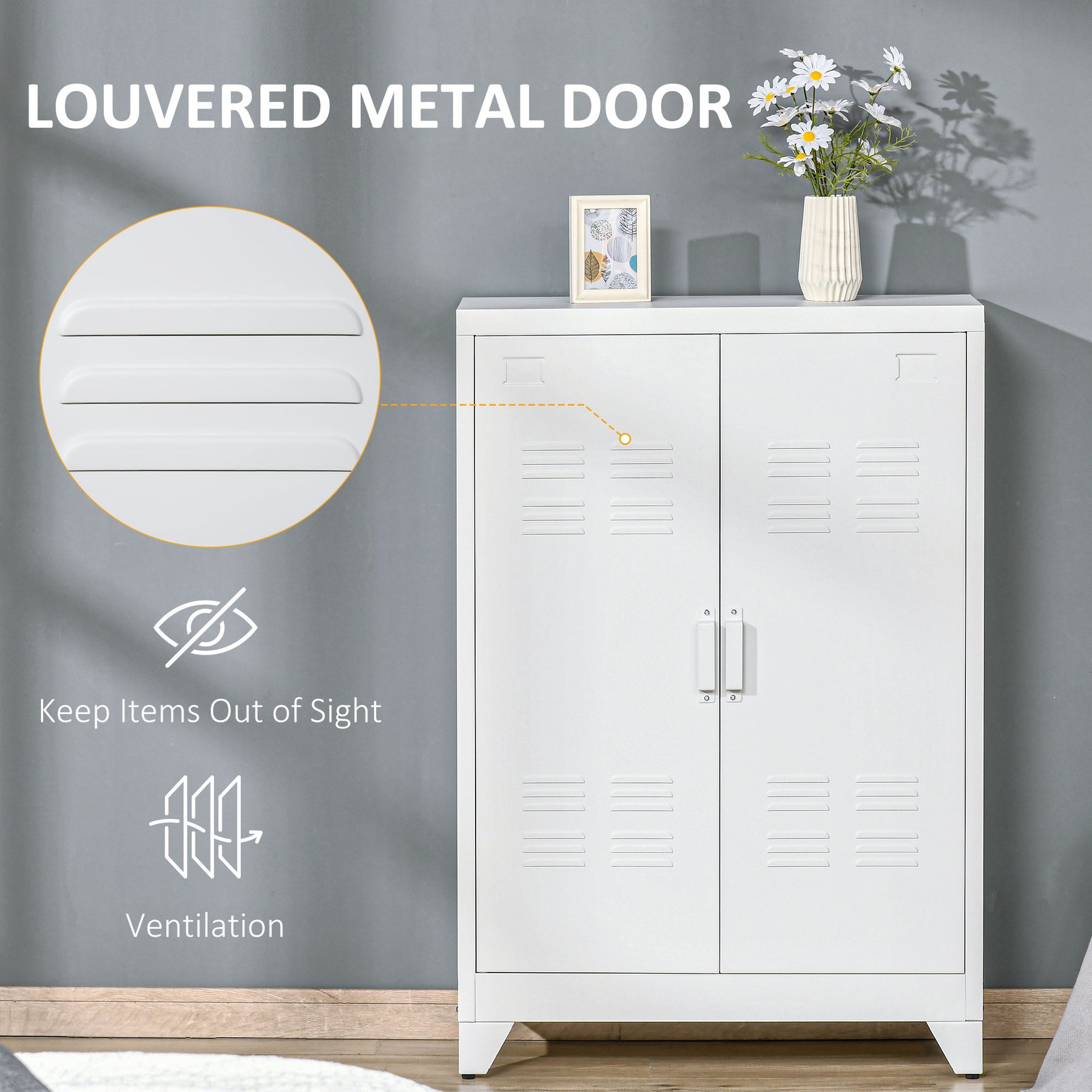 Get ready to enhance your living space beautifully with the cabinets for storage with doors from HOMCOM. The metal construction with a sleek finish offers durability and adds a functional look to your area. Covered with a louvered locker-style metal door keeps items out of sight. Add extra storage to whatever room you need it while giving your space a more industrial look with this accent cabinet from HOMCOM.