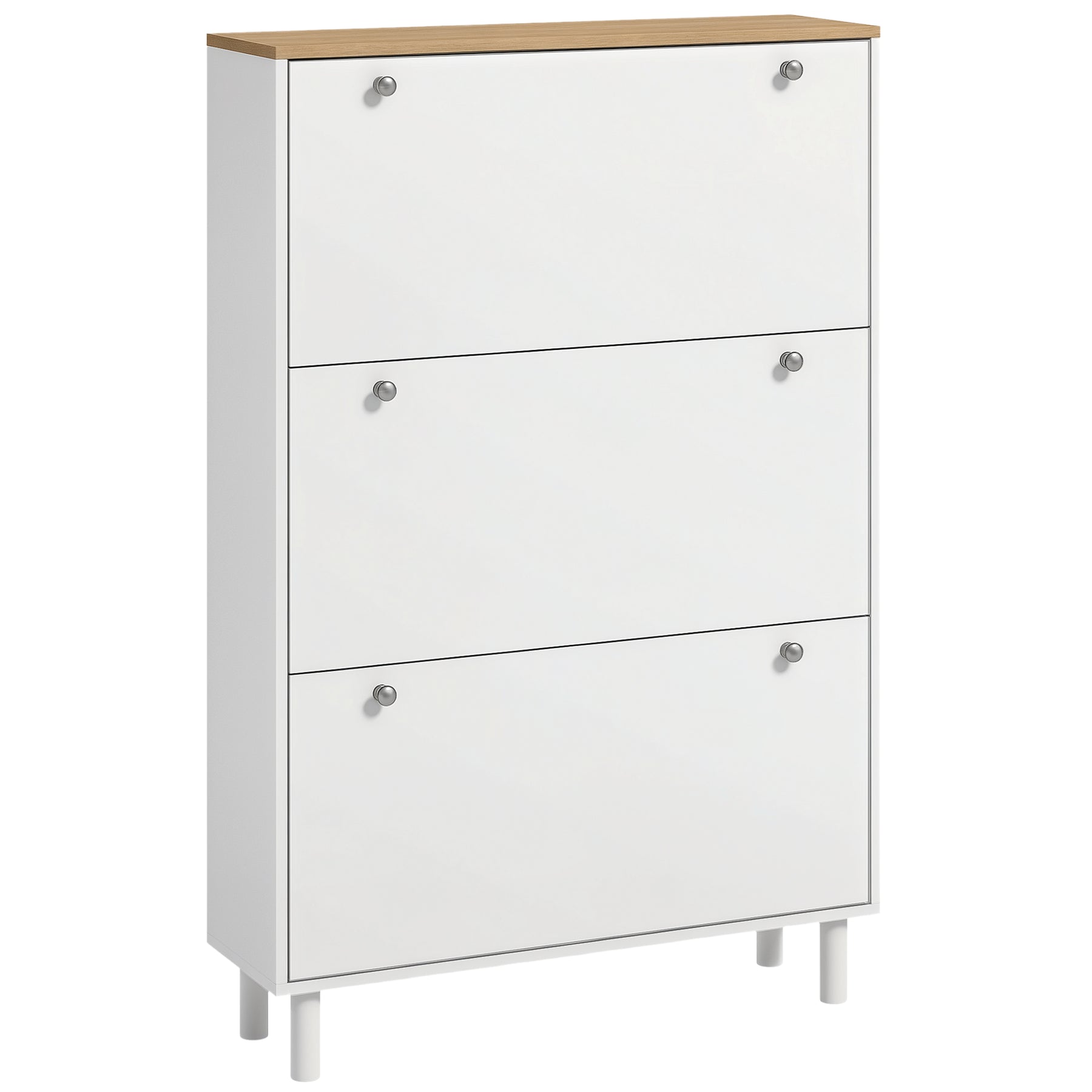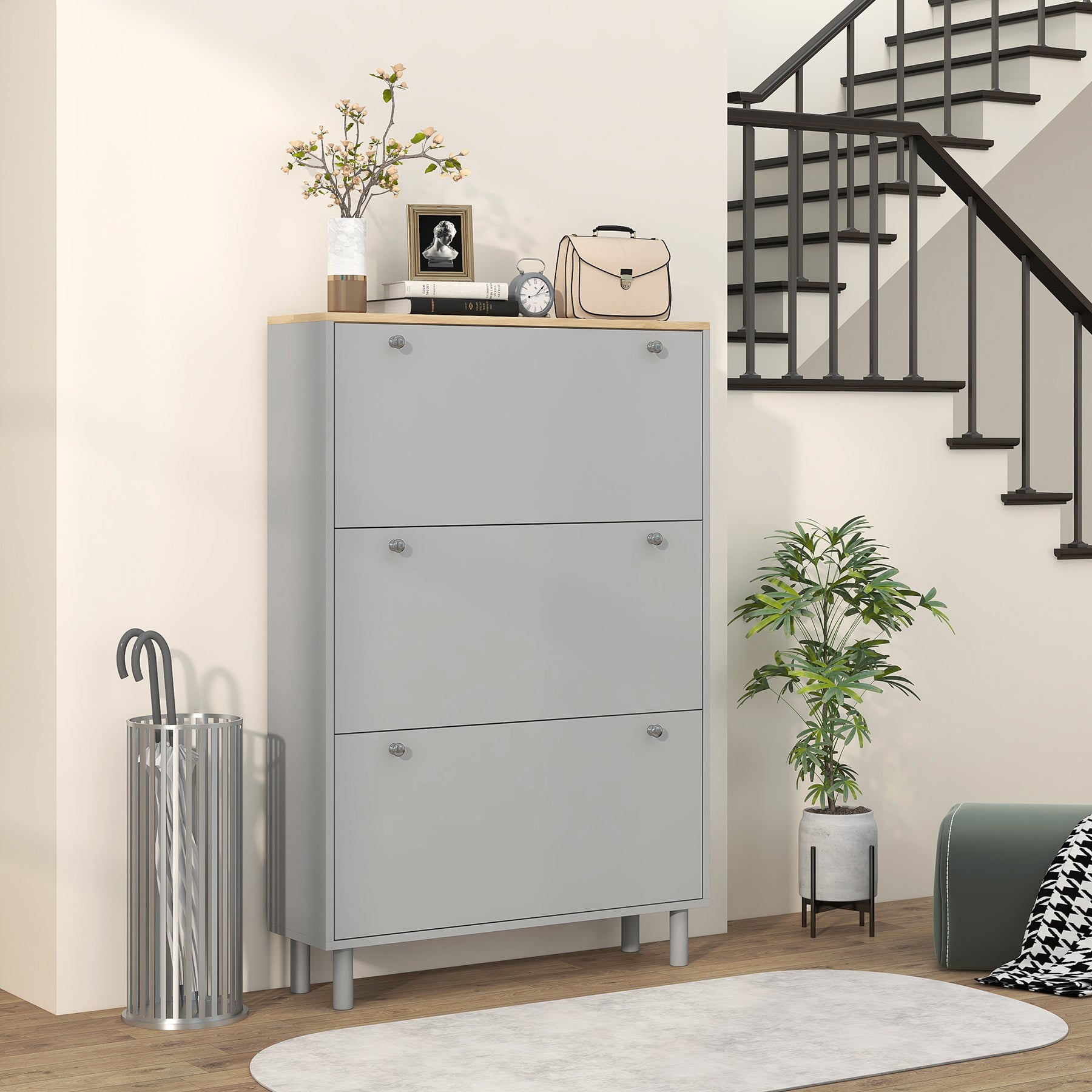 Tuck away your footwear in style with the HOMCOM entryway cabinet. Keep up to 24 pairs neatly organized in three flip drawers, and adjust the two-level shelves to fit boots to flats seamlessly. The sleek tabletop of this slim shoe cabinet adds a chic touch to any entryway while ensuring your space stays clutter-free.