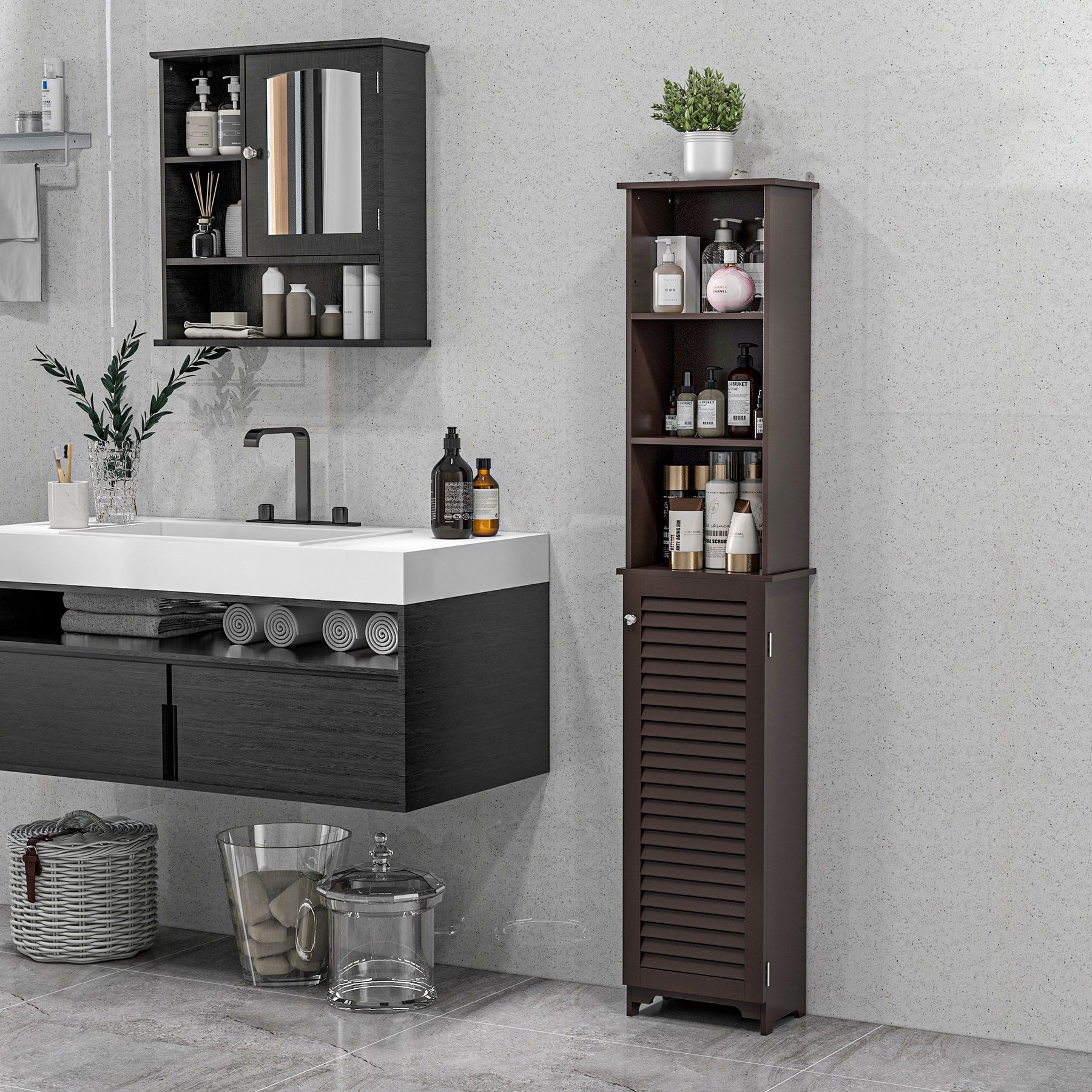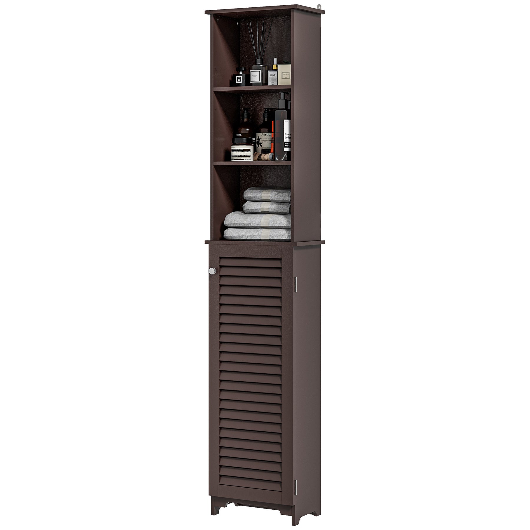 - • Compact and tall cabinet perfectly fits in narrow spaces
