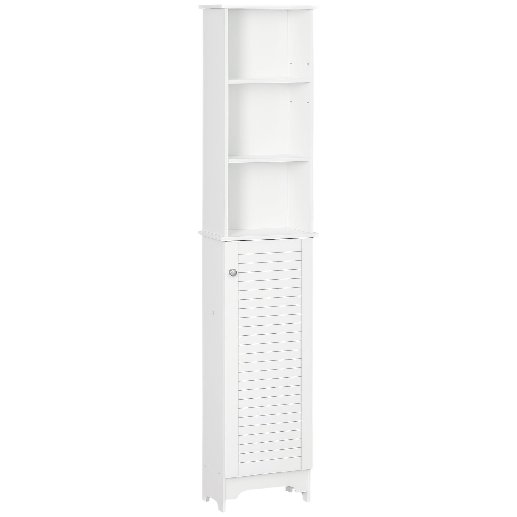 Check out this superbly designed contemporary tall bathroom storage cabinet from HOMCOM! With a chic shutter door and interior height-adjustable shelving, this small cabinet can easily fit in narrow spaces while providing plenty of storage. The bathroom cabinet is made of P2-grade MDF material that is stable and natural. Furthermore, this freestanding cabinet is versatile, allowing you to place storage in places that are normally unusable due to size.