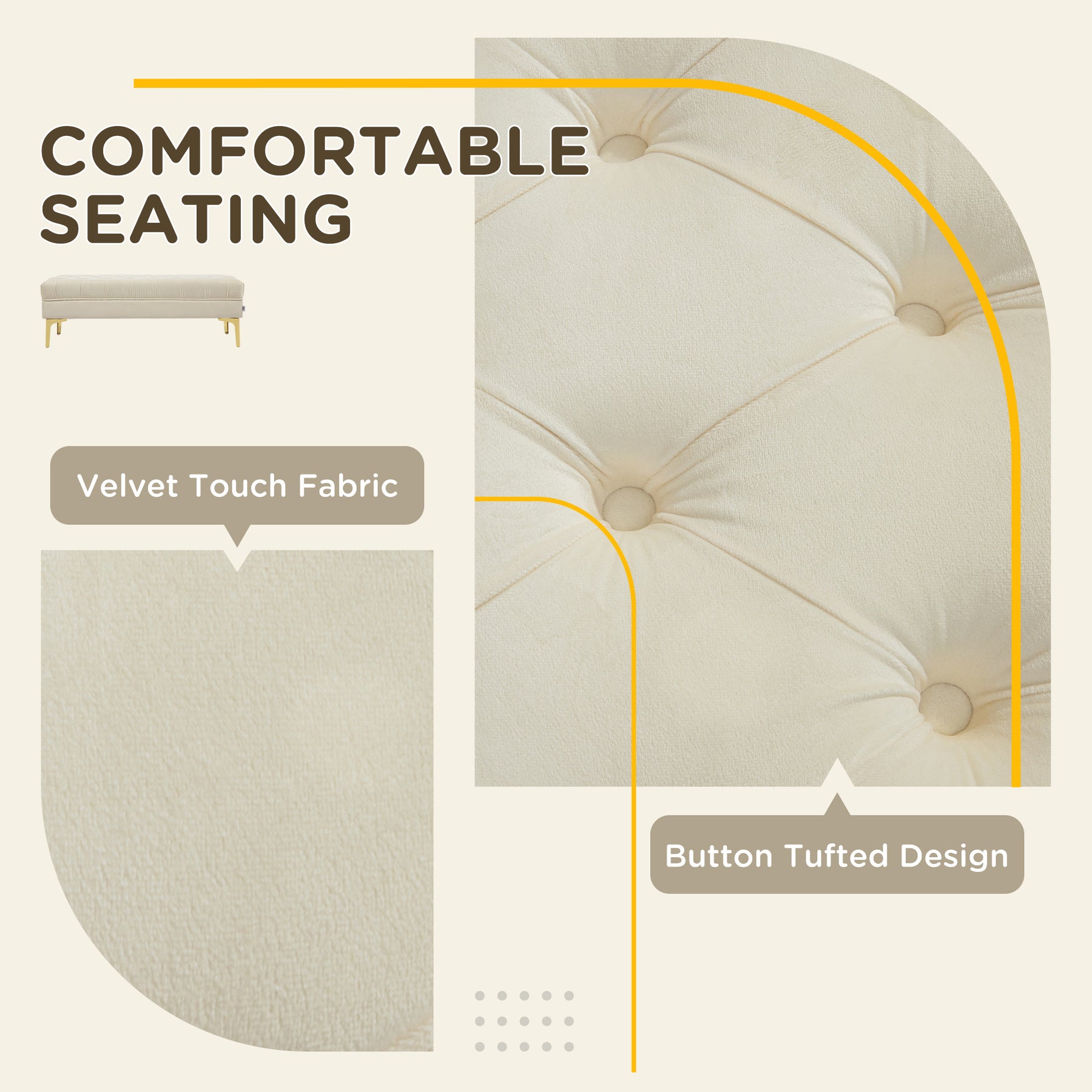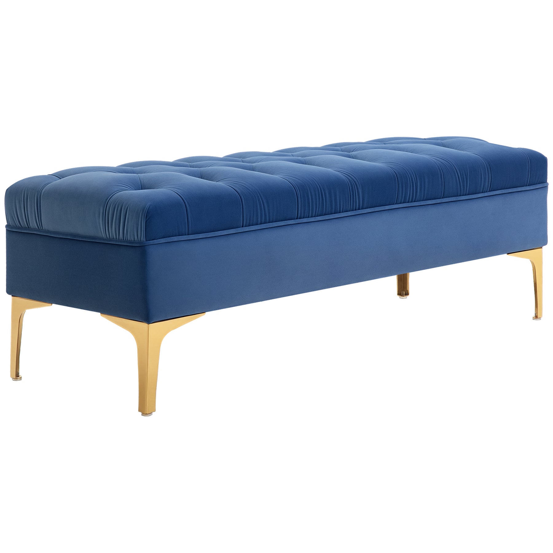 Spice up your interior with this stylish tufted bench from HOMCOM, great for adding accenting detail to any bedroom, living room, or entry area. Covered in soft velvet fabric, this sitting bench has golden metal legs and a plush foam-padded seating area. It's also suitable for parties and family gathering to play games or collapse on the sofa and put your feet on it. Buy the ottoman bench to increase your happiness and make the great piece of furniture of your home.