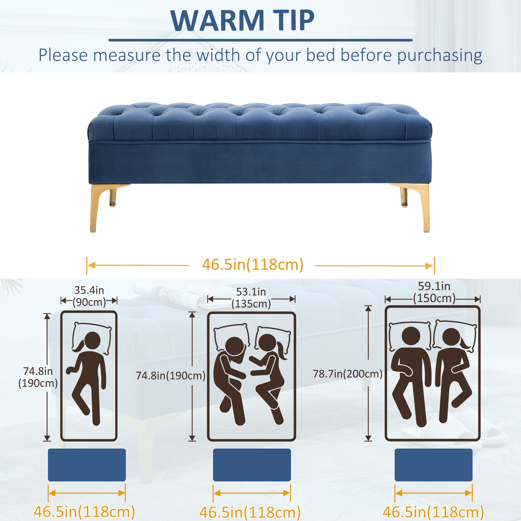 - • Seat Dimension: 46.5" W x 17.7" D (118 x 45 cm)