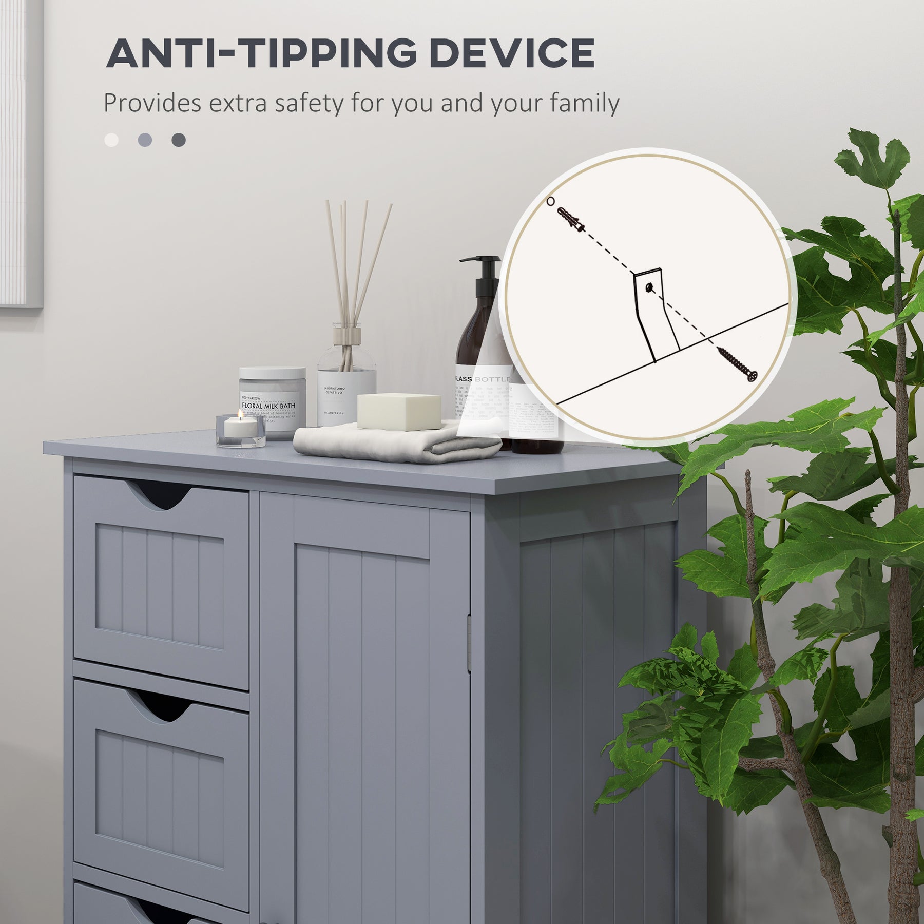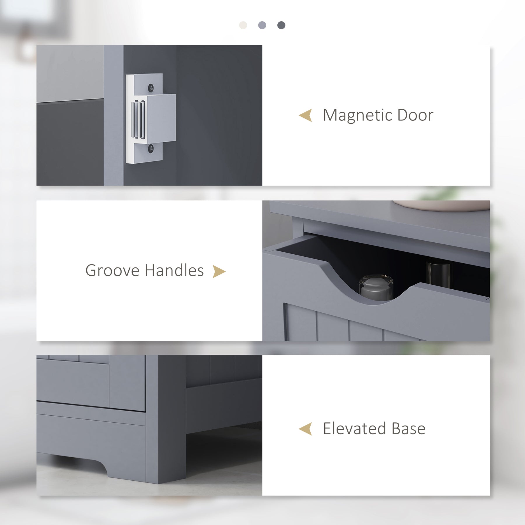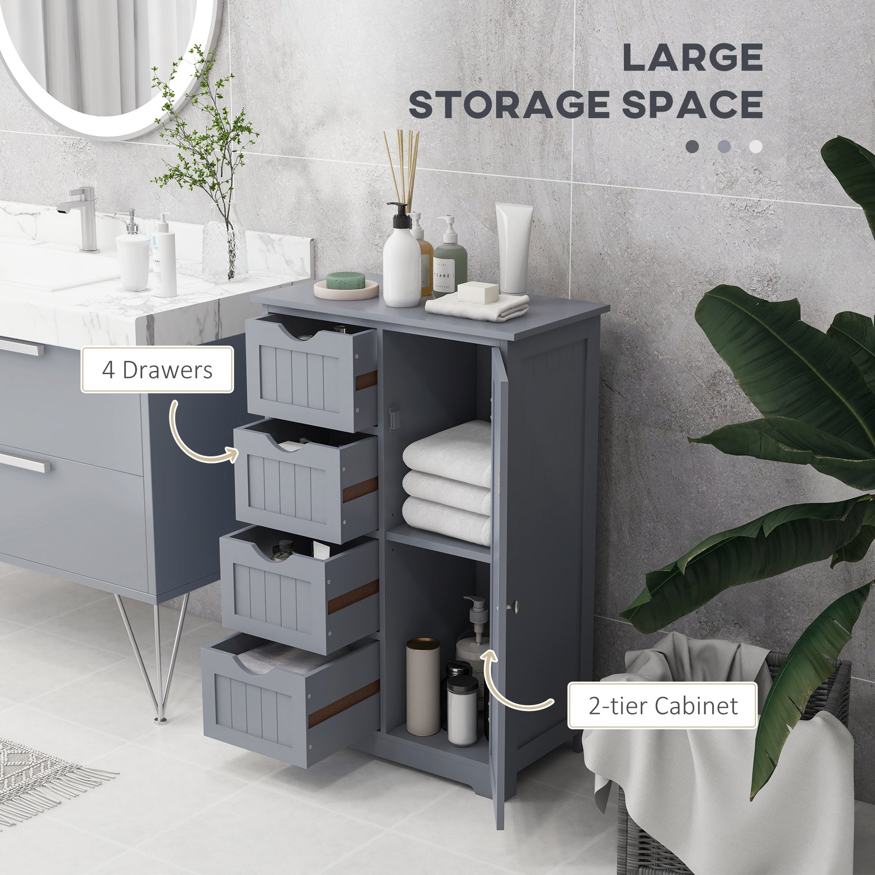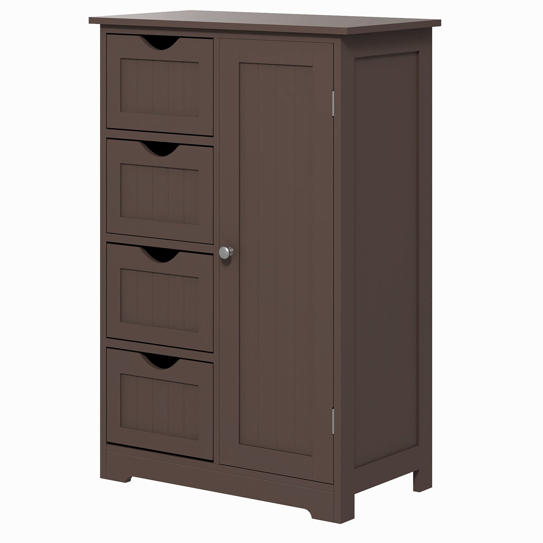 kleankin's storage cabinets expand washroom storage with shelves and doors. Made from stable MDF with painted finish, this accent cabinet has four drawers and a spacious cabinet with an adjustable shelf. It's excellent for storing your bathroom essentials and can be a versatile storage unit in other home areas.
