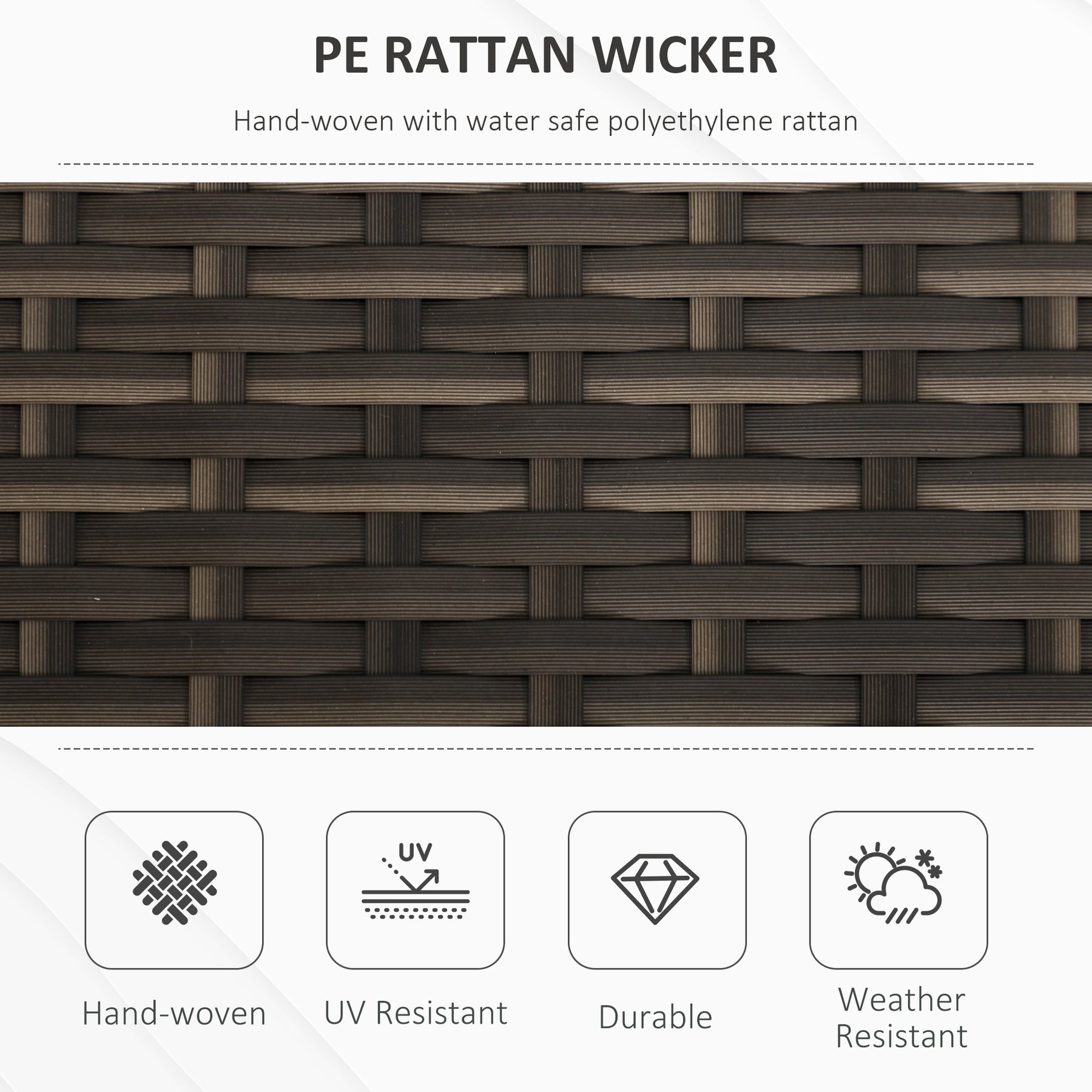 Outsunny offers a 2-in-1 high-capacity storage solution and a comfortable seat. This patio bench with storage is handwoven with PE wicker, offering the look of natural rattan with enhanced water resistance. The heavy-duty steel frame makes it hold weight without warping. With a soft cushion and two handles, it's easy to carry, making it suitable for seating and storing items in any outdoor area. Use this outdoor storage box for garden tools, deck or balcony essentials, or poolside supplies.