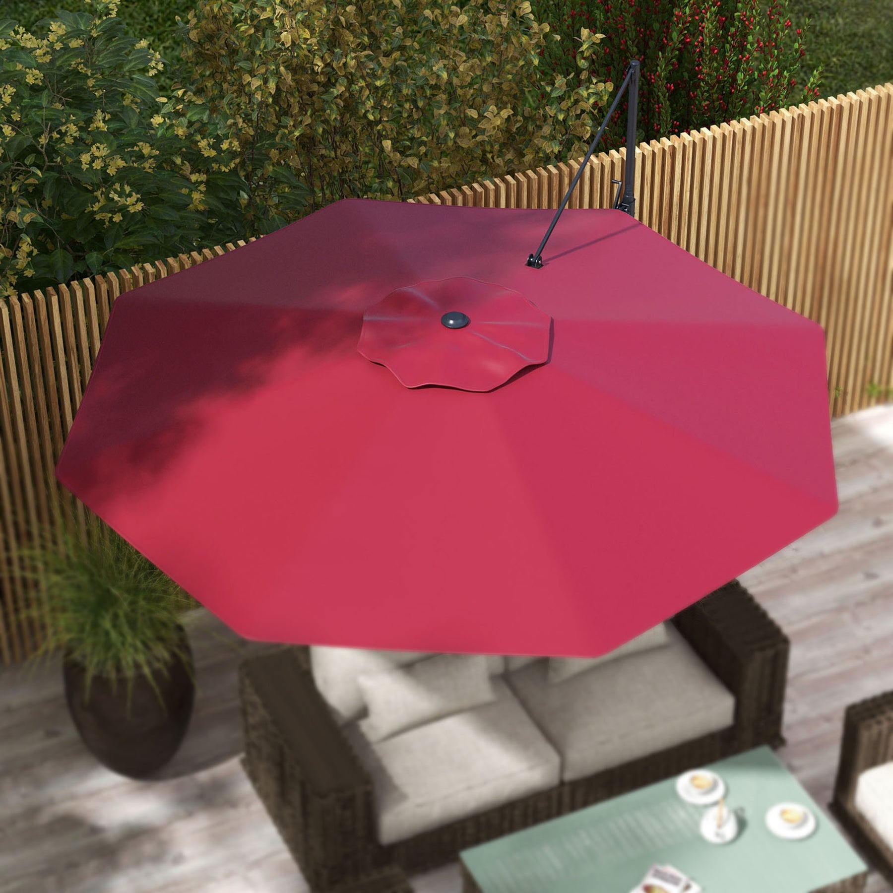 Keep yourself protected whilst enjoying the sun all day with this cantilever patio umbrella from Outsunny. Connected to the frame via eight ribs for extra strength. A crank mechanism for effortless opening and closing, this parasol offers you ample shade from sunlight at an angle you control. Swivel the cross base to shade anywhere across a full 360 degrees. Provides soothing shade for you throughout the summer with our offset patio umbrella.