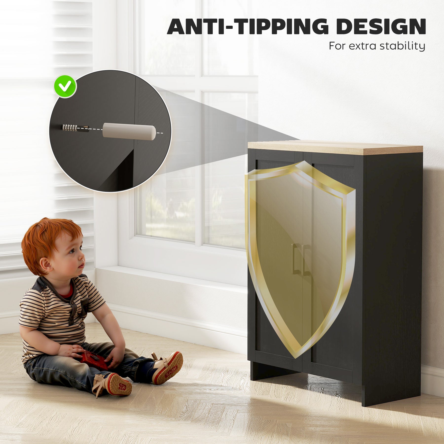 Quickly add essential storage and keep your kitchen supplies organized with the HOMCOM buffet cabinet with storage. This coffee bar cabinet offers spacious storage with a large tabletop and a three-tier cabinet. The three-level adjustable shelves accommodate items of varying heights, while the anti-tipping design ensures secure attachment to the wall for added safety.
