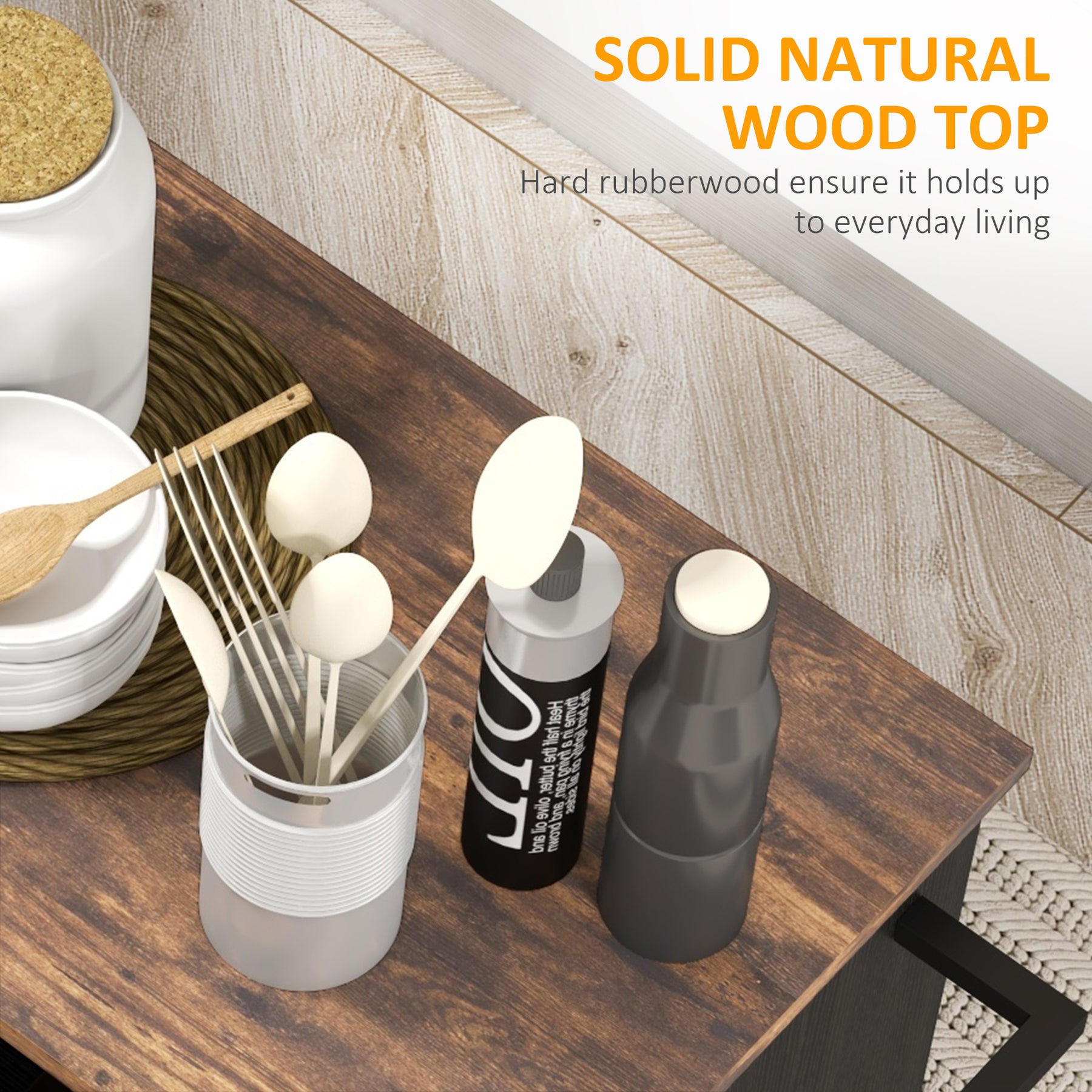 - • Rubberwood is hardy, ensuring it holds up to everyday living