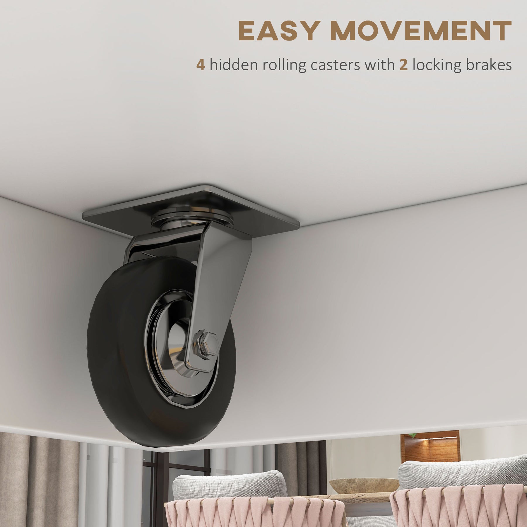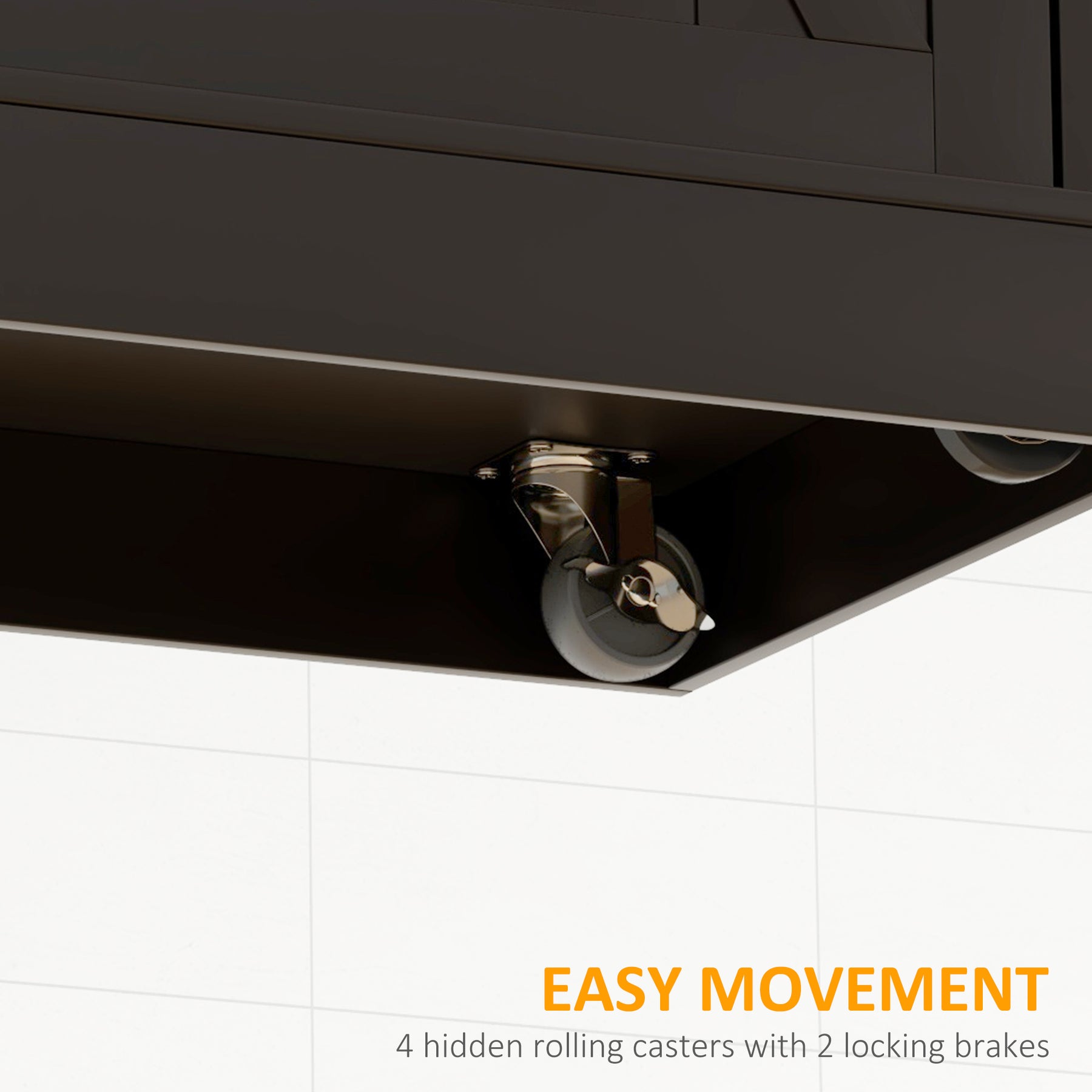 - • Four smooth-rolling casters with two locking brakes provide easy mobility