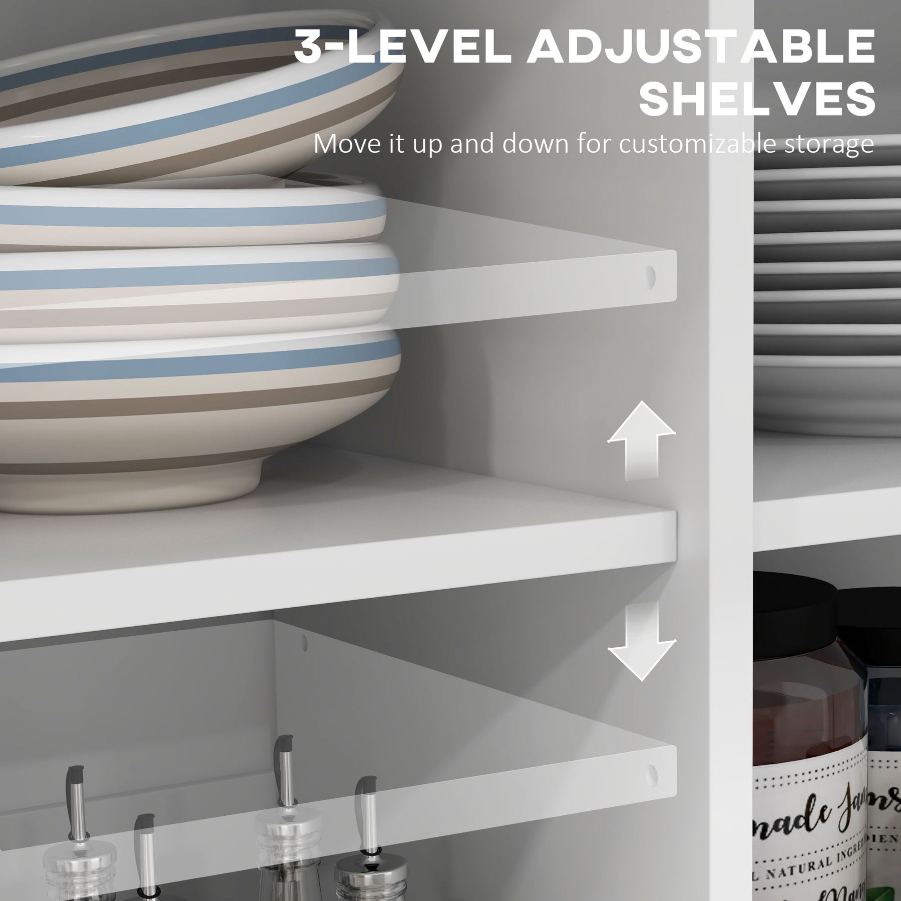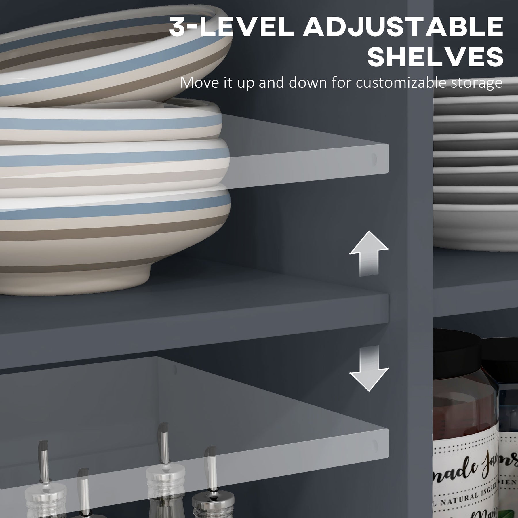 - • Adjustable shelves for customizable storage