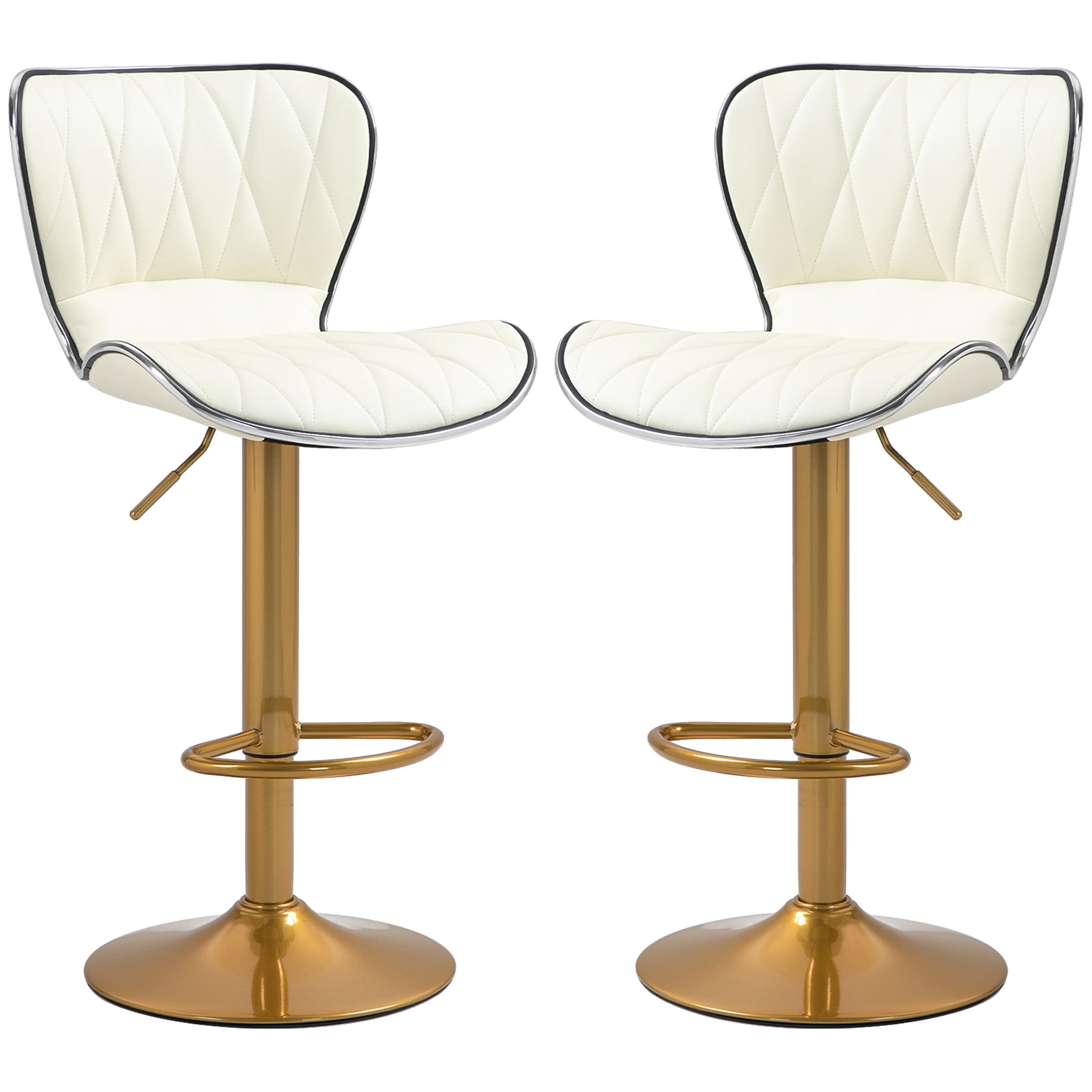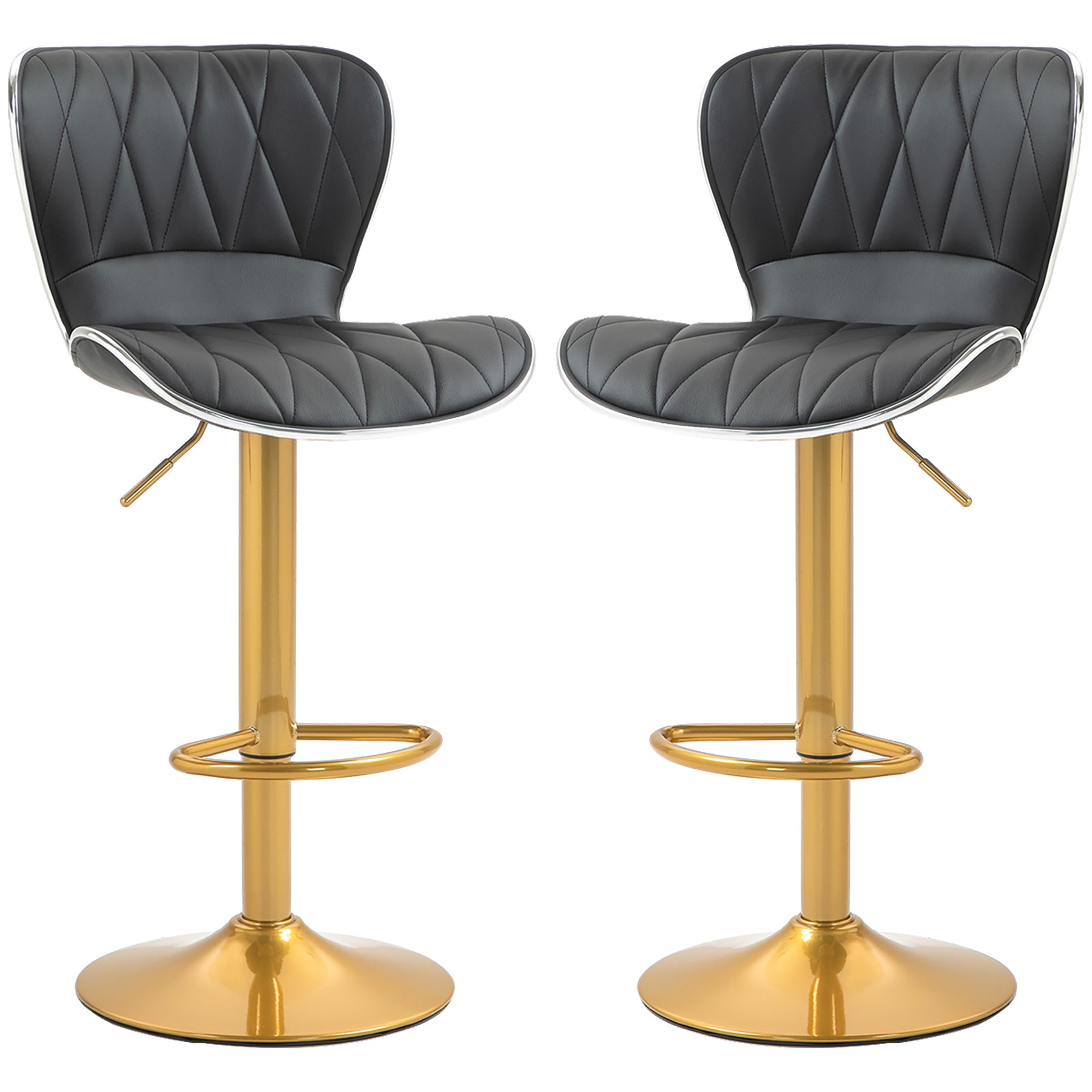 Elevate your kitchen island or bar area with the HOMCOM 2-pieces counter height bar stools, blending luxurious design and functionality. These island stools feature a swanky gold base and diamond tufting that ooze sophistication. Swivel bar stool with a curved seat, back, and footrest provides unrivaled comfort, all wrapped in sleek PU leather upholstery. Upgrade your seating with the stylish counter chair set and enjoy a touch of elegance.