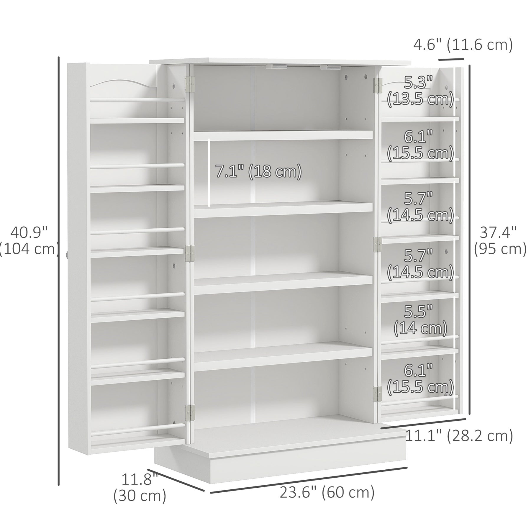 - • Overall Dimensions: 23.6" W x 11.8" D x 40.9" H (60 x 30 x 104 cm)