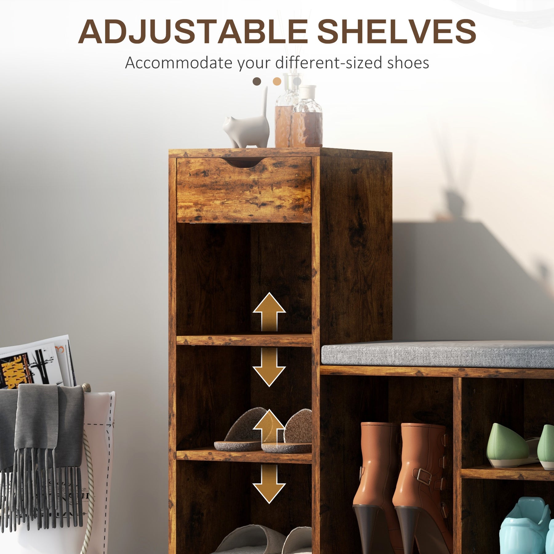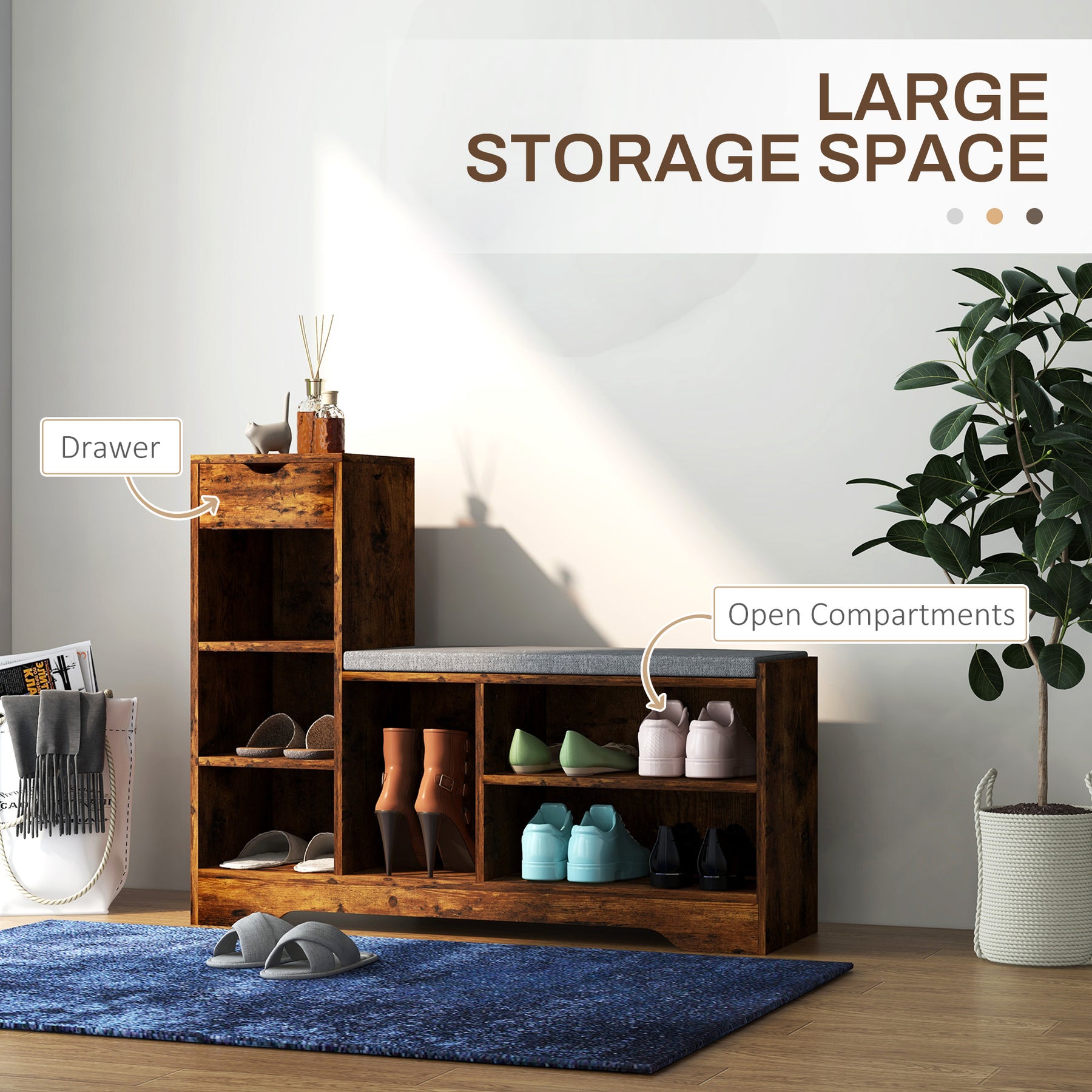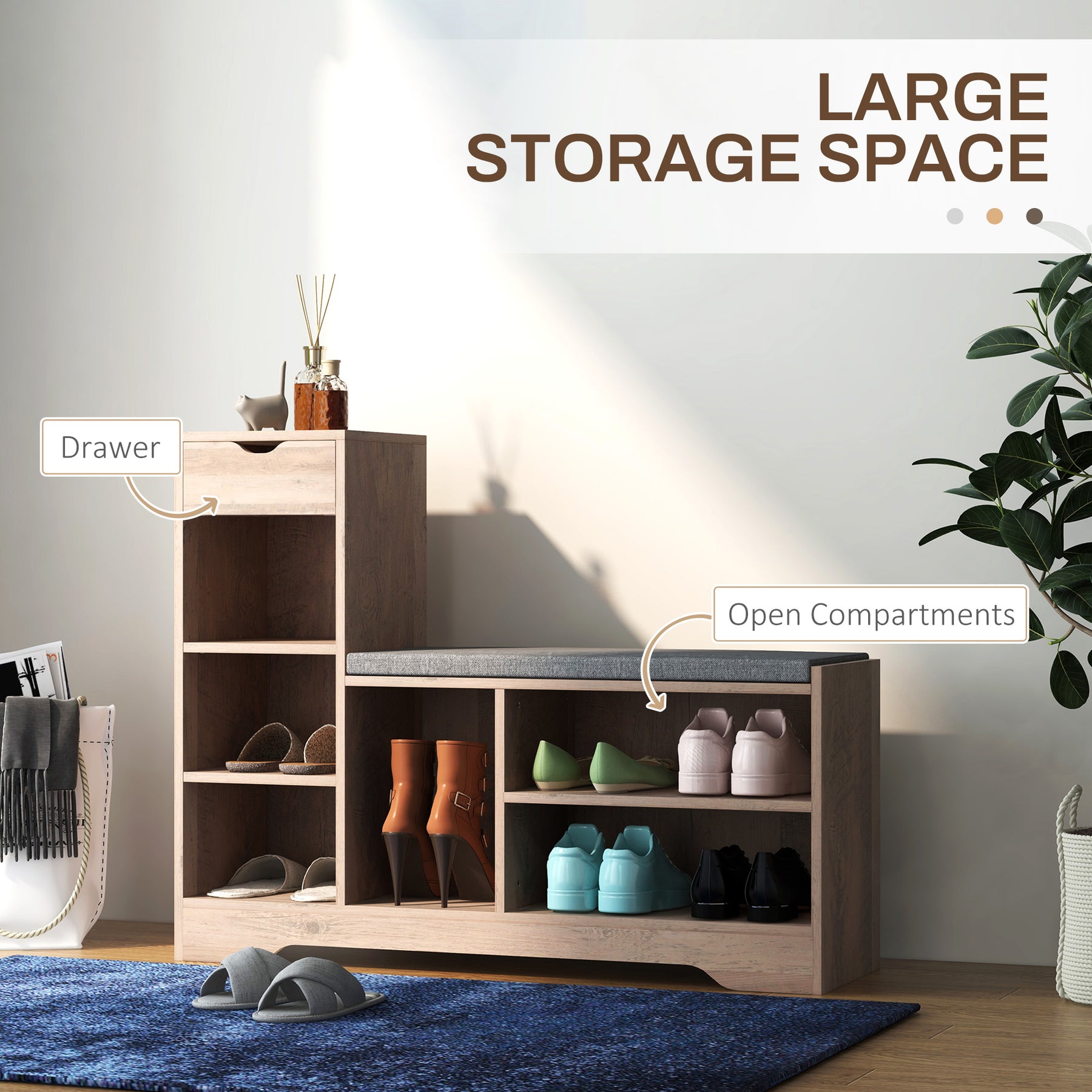It's time to organize your shoes with our HOMCOM shoe bench. Its simple and modern look makes it pair well with any décor in your room. You can put shoes, keys and anything else you would like in the drawer and shelves to enable space in your home. The open design makes it easy to find your shoes at once. Also, our HOMCOM shoe bench can be used as a storage unit in the living room, entryway and other places. Keep your shoes neatly and tucked away with our multi-use bench with storage.