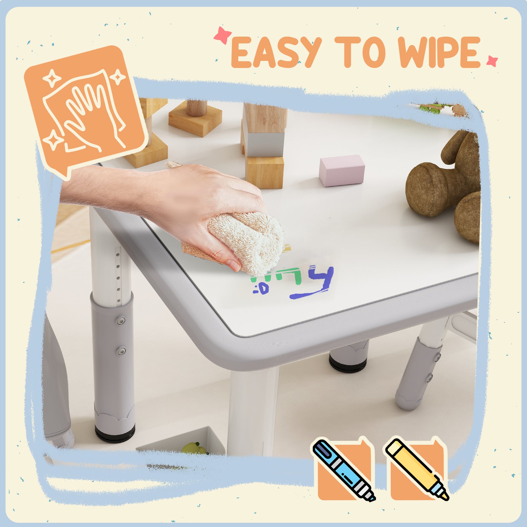 Welcome to the world of fun and creativity with the kids table and chairs set from Qaba! Designed for your child's enjoyment, this set includes a table and two chairs, great for play dates, homework sessions, and meals with friends. The adjustable height means that this set grows with your child, suiting their needs as they age. Your kids will feel like grown-ups with this feature, boosting their confidence and independence. The easy-to-clean surfaces allow for a hassle-free clean-up time.