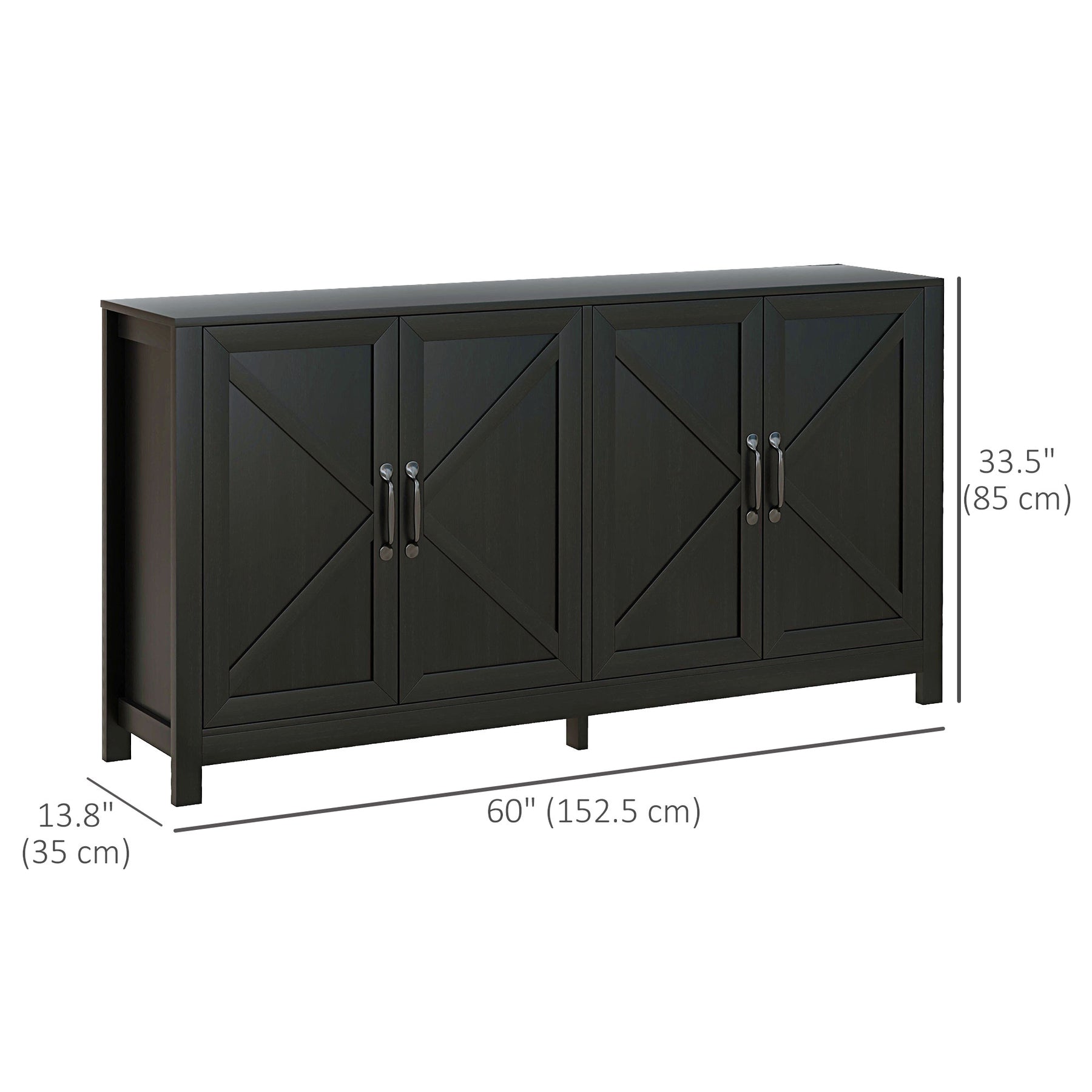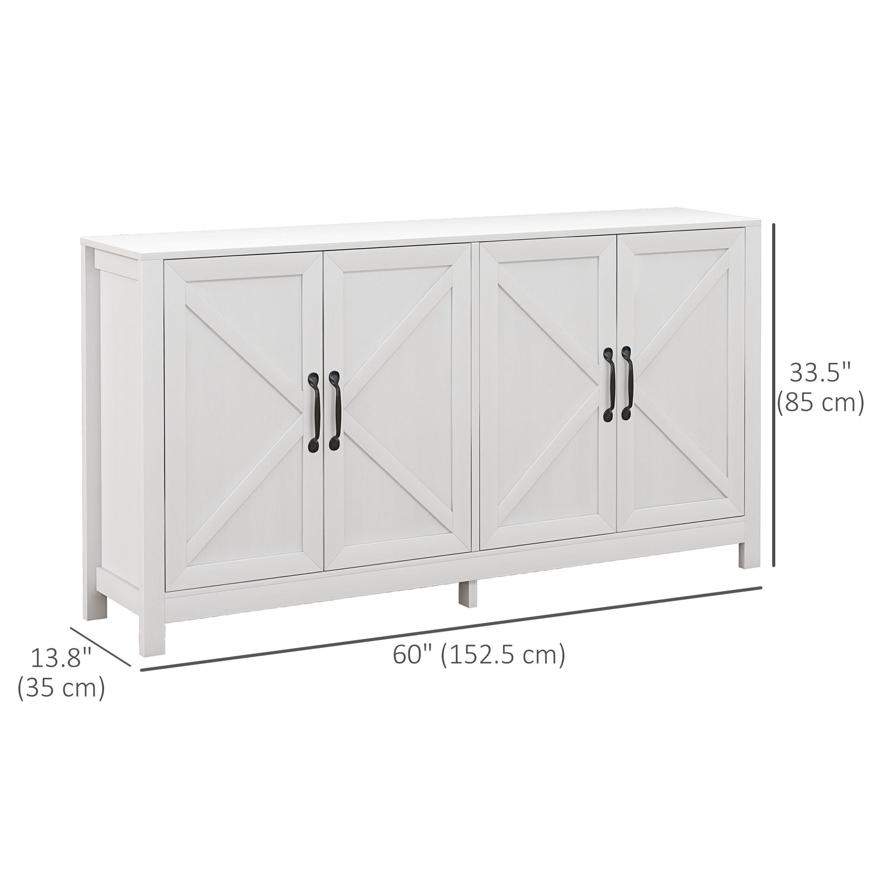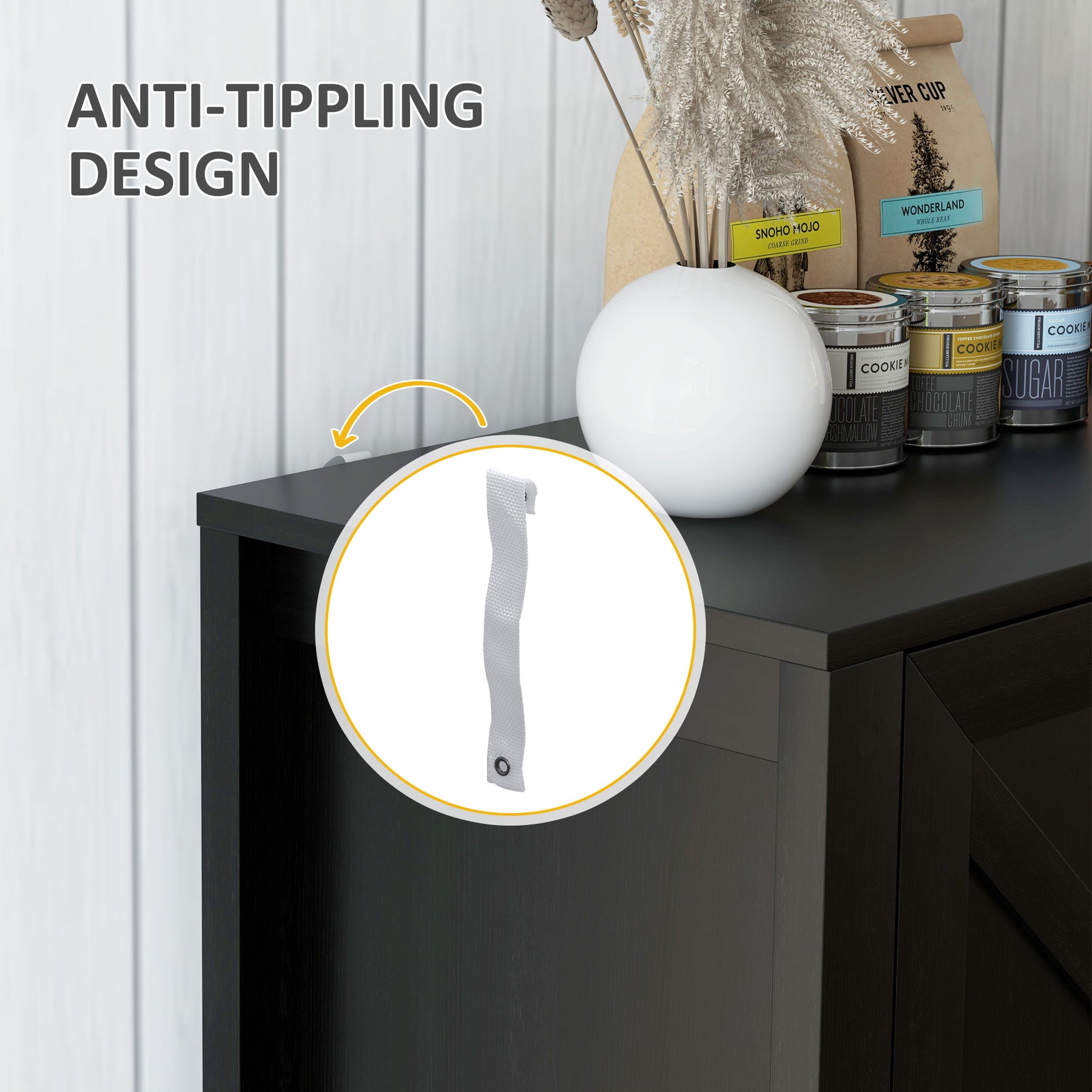 Experience a new storage level with the HOMCOM Modern Farmhouse Style Kitchen Storage Cabinet. This exceptional piece features a barn door design in a wood grain finish, a unique touch that effortlessly complements any decor. Its adjustable shelving is a game-changer, accommodating everything from kitchenware to media devices, making it a versatile addition to your entryway or kitchen. With its standout design and practical features, this storage solution is a must-have for any home!