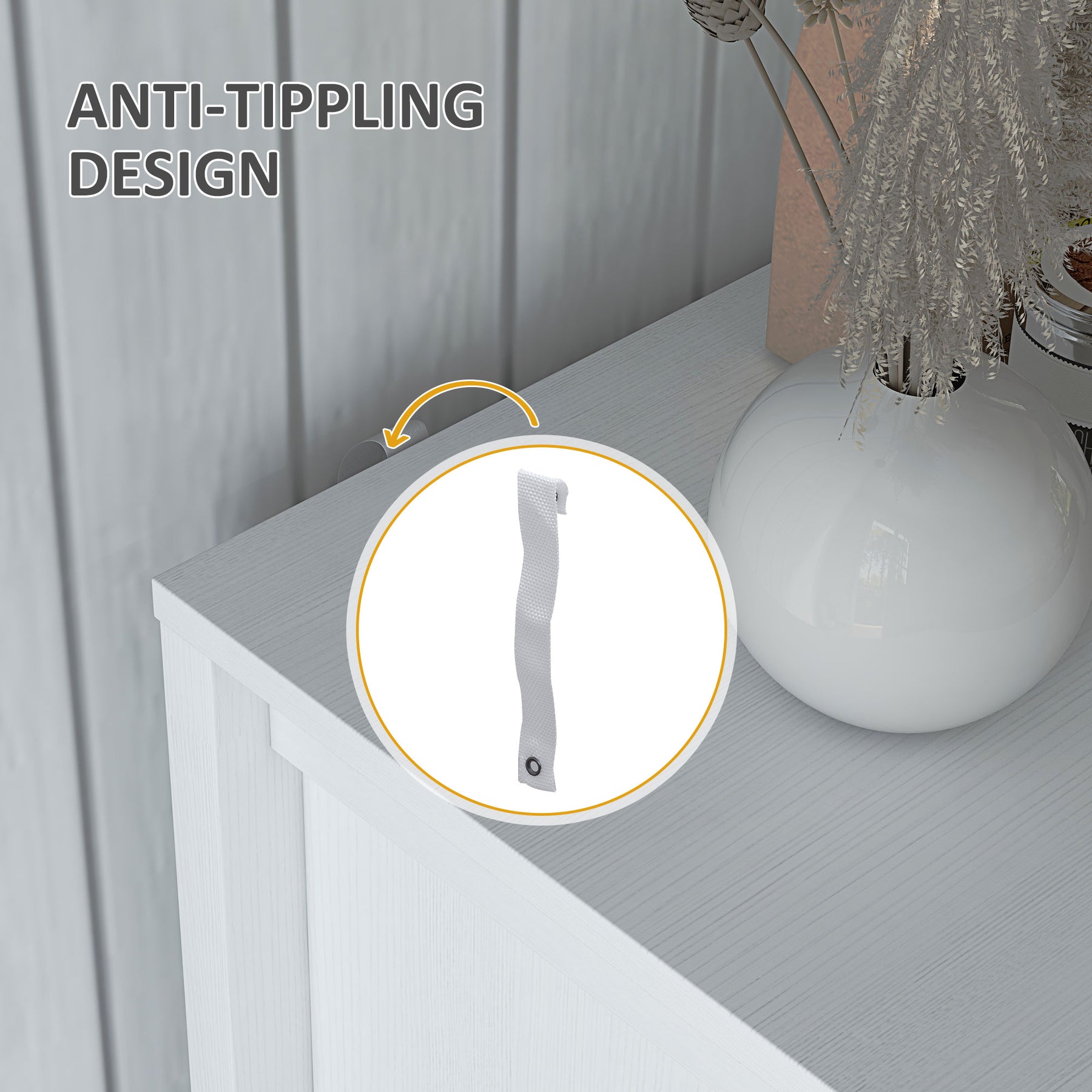 - • Solid particle board construction, metal hinges, and an anti-tip kit for enhanced stability
