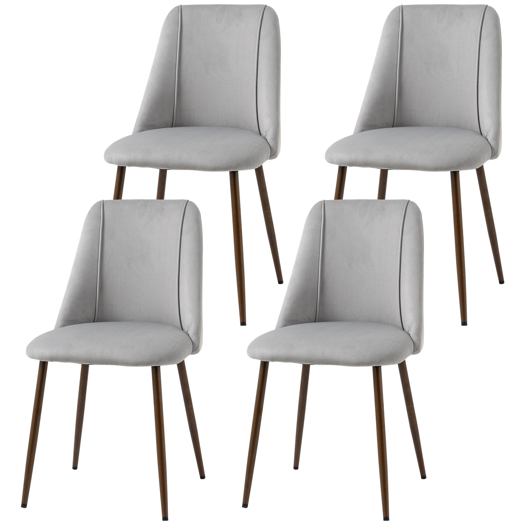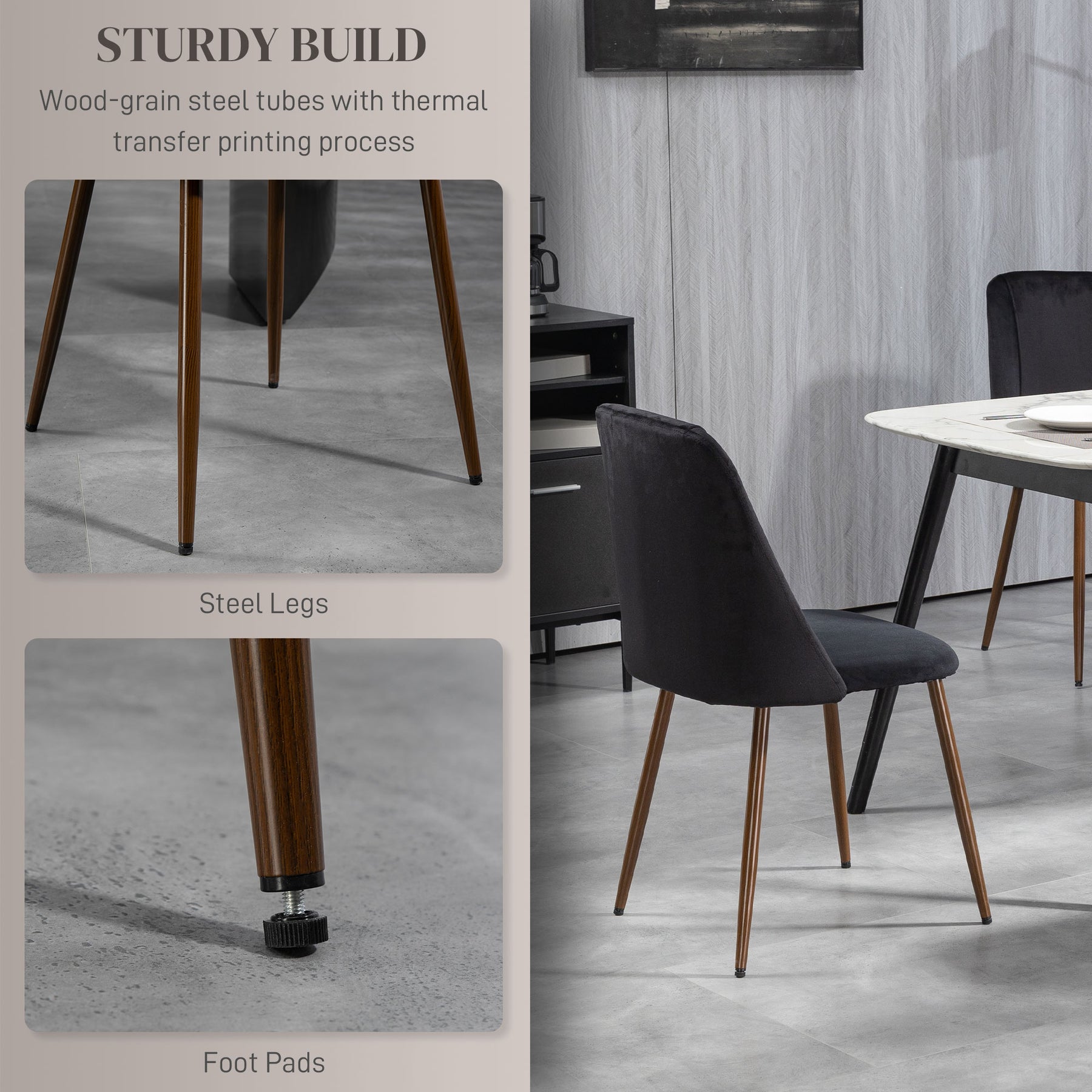 Transform your dining experience with HOMCOM's set of four modern dining chairs, perfect for family meals or lively gatherings. These chairs not only enhance your dining room's elegance but also serve as stylish accents in any room, from the bedroom to the office. Enjoy the plush comfort of a padded seat and a supportive curved back. With sturdy steel legs, these chairs promise stability and durability, making them a reliable choice for everyday family life and special occasions alike.