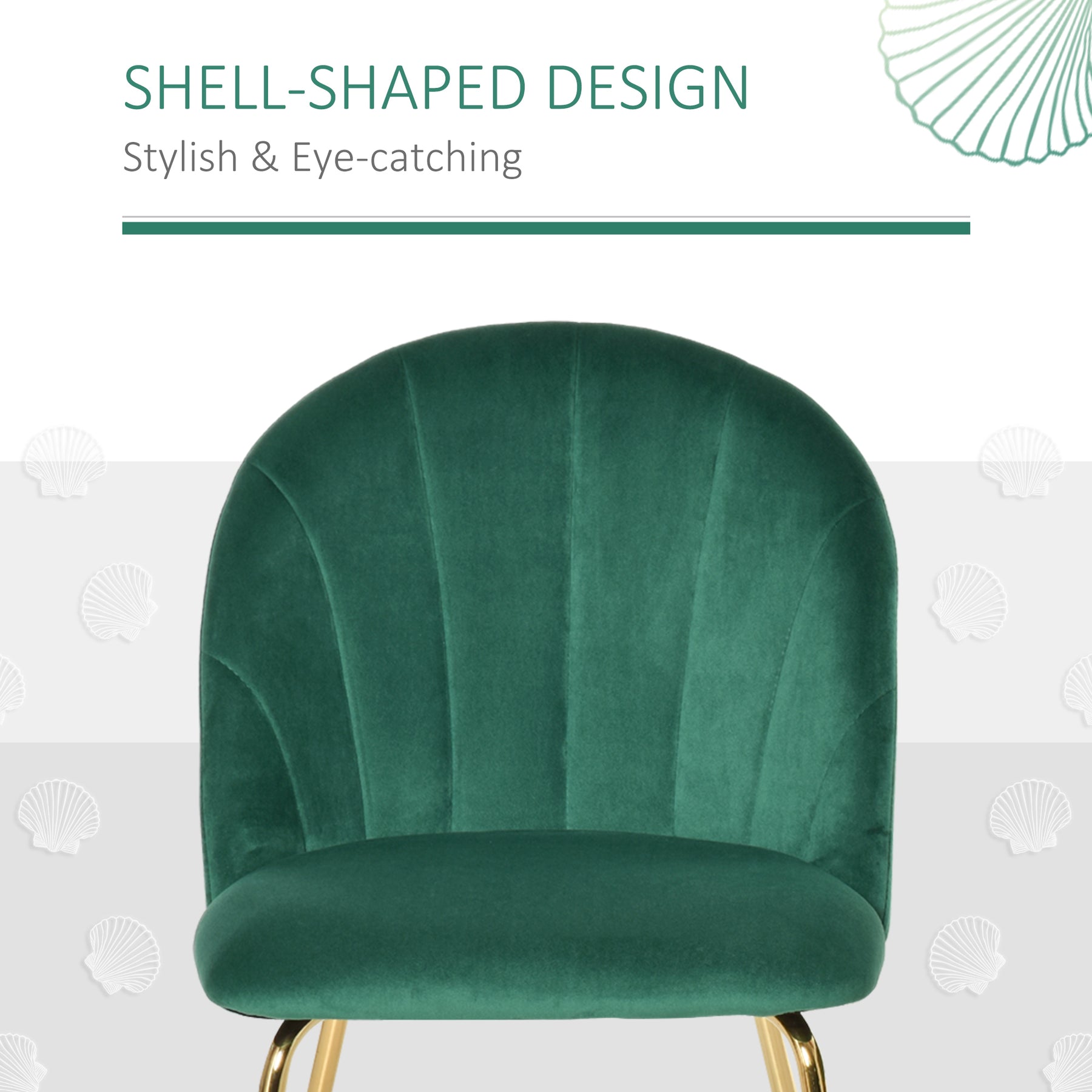 The romantic shell-shaped design accent chairs for living room makes a distinct statement in any setting. Appealing plated gold steel legs add vintage glamour to your home setting. Soft cushioned seats with smooth velvet-touch fabric deliver exceptional comfort. This velvet dining chair set is an elegant addition to your living space, leisure room, or lounge.