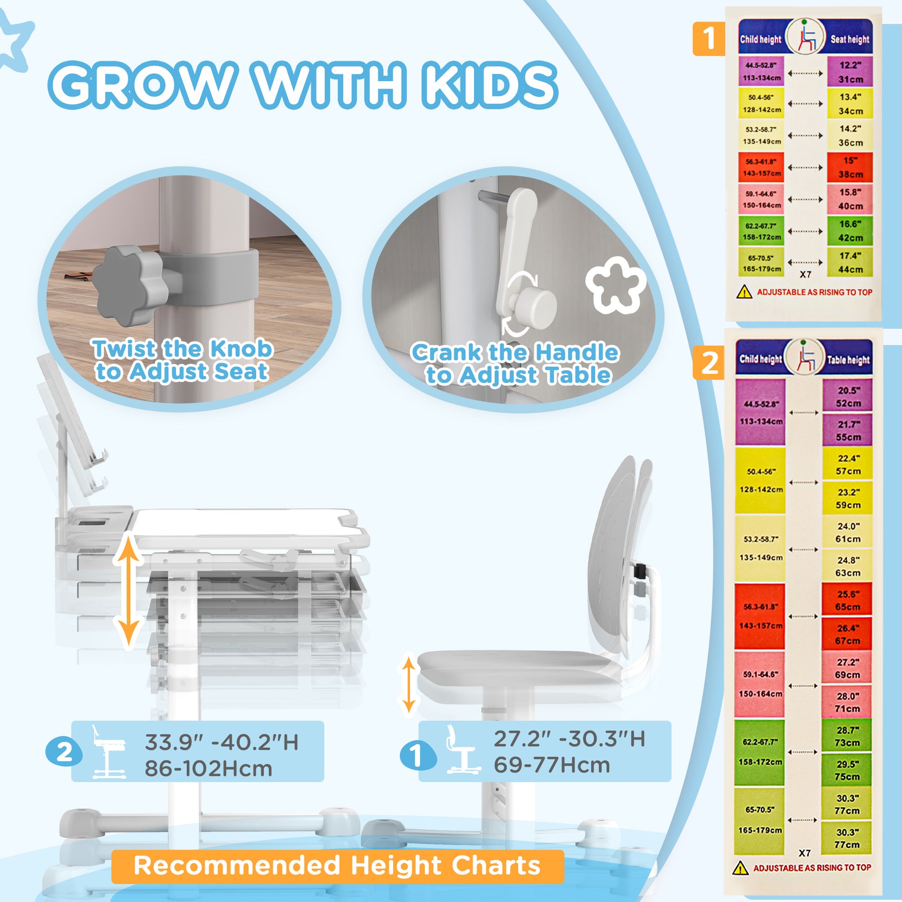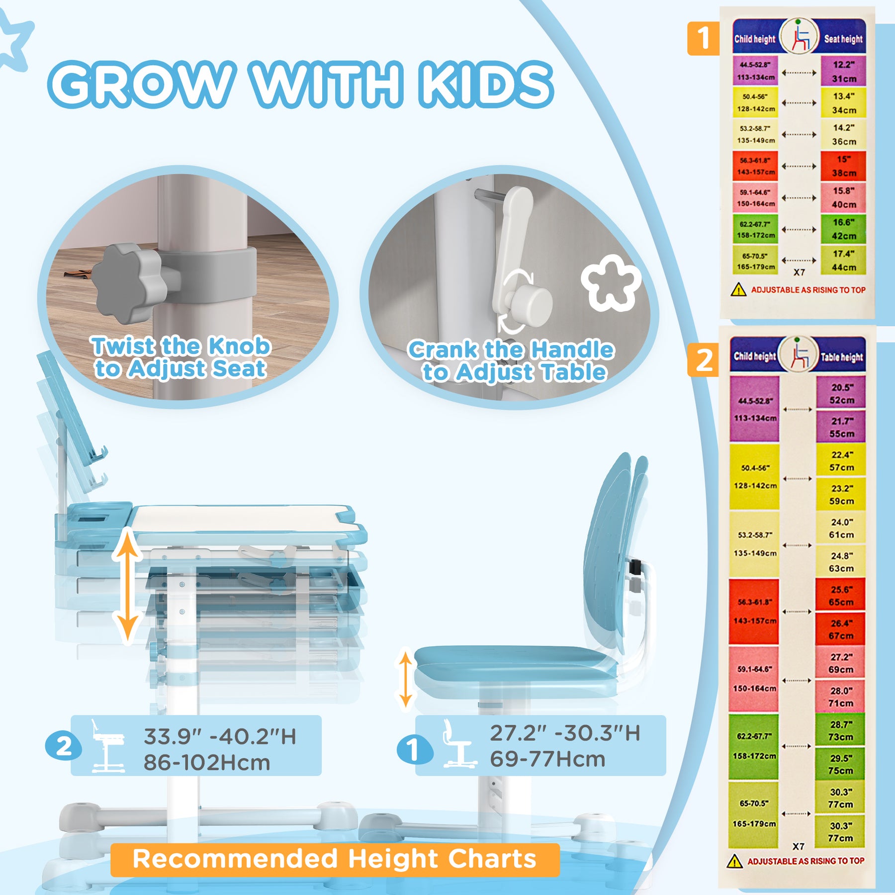 Discover the joy of learning with the Qaba kids desk and chair set! Featuring an MDF tabletop and steel legs with curved design for enhanced stability, plus adjustable anti-slip foot pads. This study table and chair adapt to your growing child, thanks to a spacious tilt-adjustable surface that encourages good posture and a comfy, ergonomic chair.