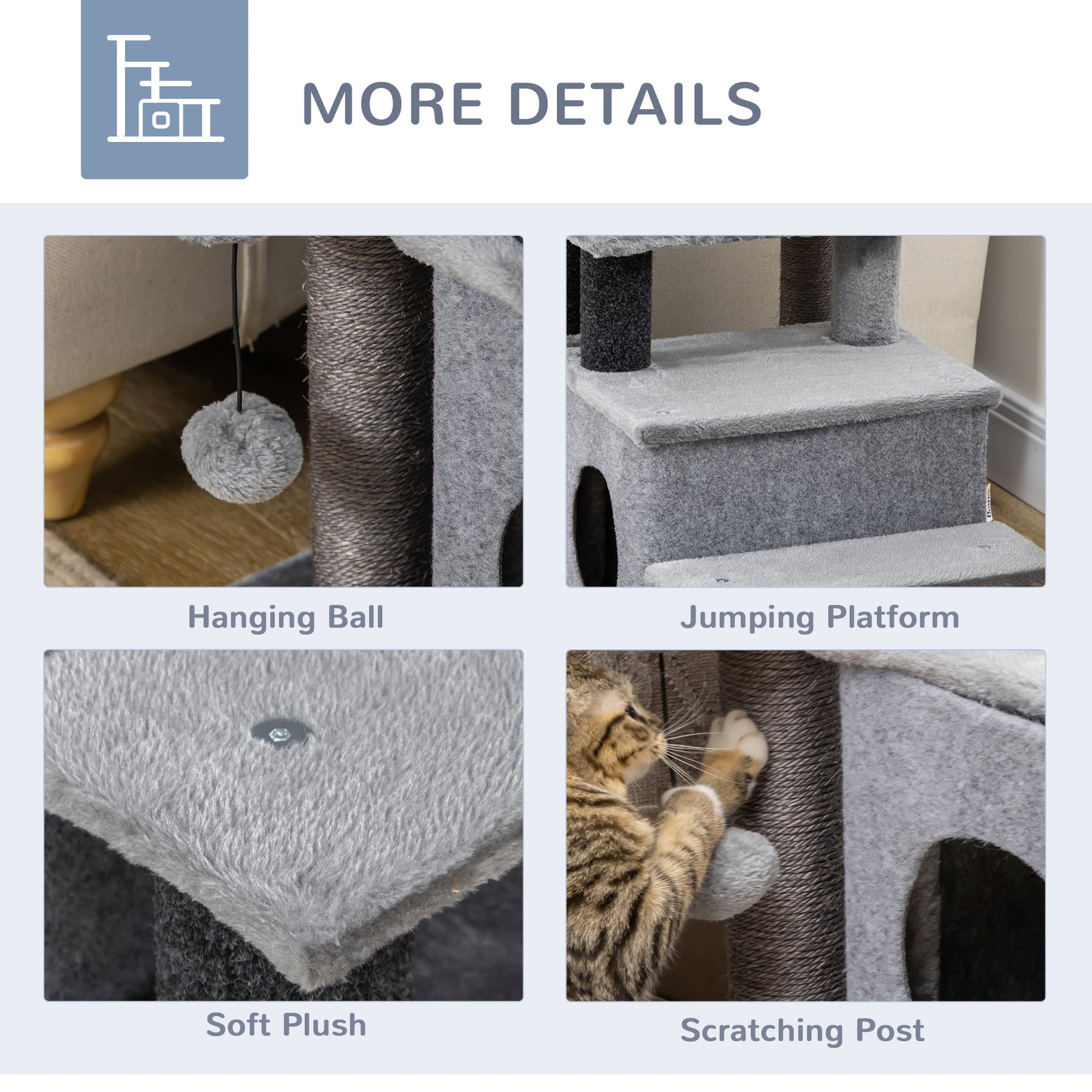 Did you know that allowing pets to jump on and off the bed can cause joint and knee pain, especially in older pets or those with mobility issues? Training your pet to use steps can be a viable solution. Our PawHut multifunctional cat steps encourage exercise by providing a safe space for your kitty to leap, climb, scratch, jump, and play. It even includes a cozy condo. By offering this fun and secure setup, you're taking an essential step toward your pet's health.
