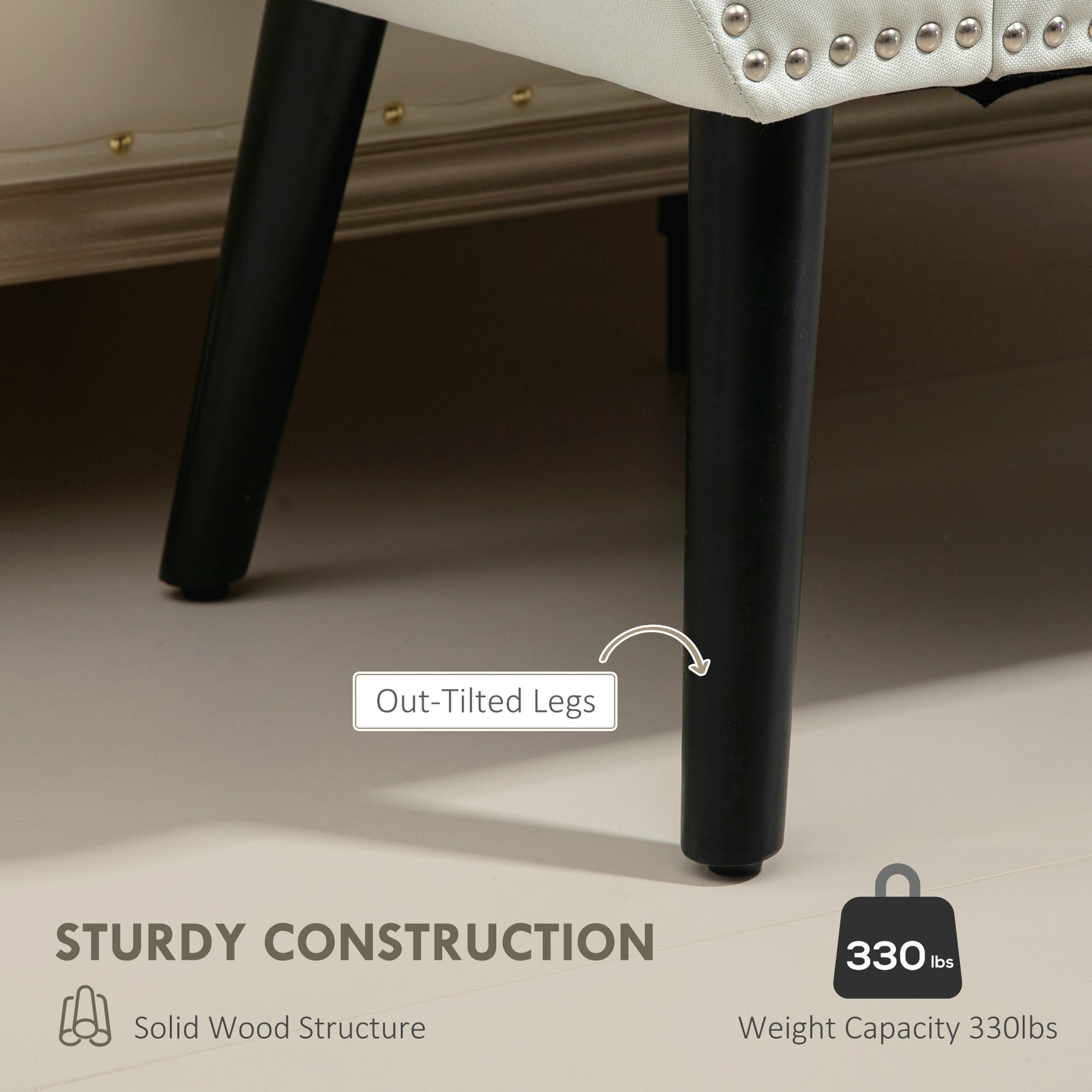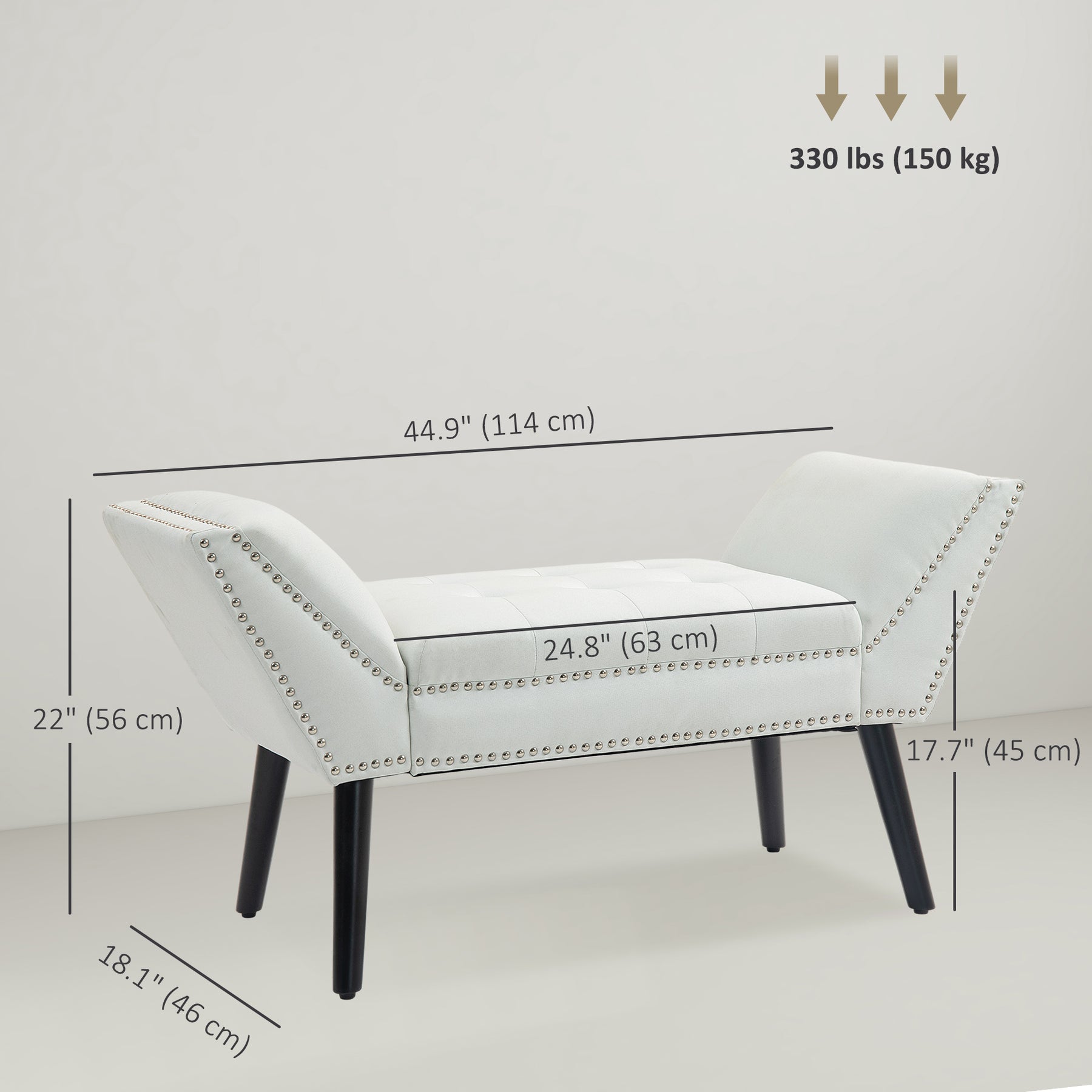 Featuring a rivet decorated edge, linen-like fabric, deep button-tufted cushioning padded with a high-density sponge, this entryway bench is both beautiful and versatile. The modern and elegant appearance is beautiful and can fit your bedroom, living room, and entryway perfectly. This bench seat can be used as a bed bench, a window seat, or a footrest. Add that extra touch of modern class and comfort to your home with this HOMCOM bedroom bench.
