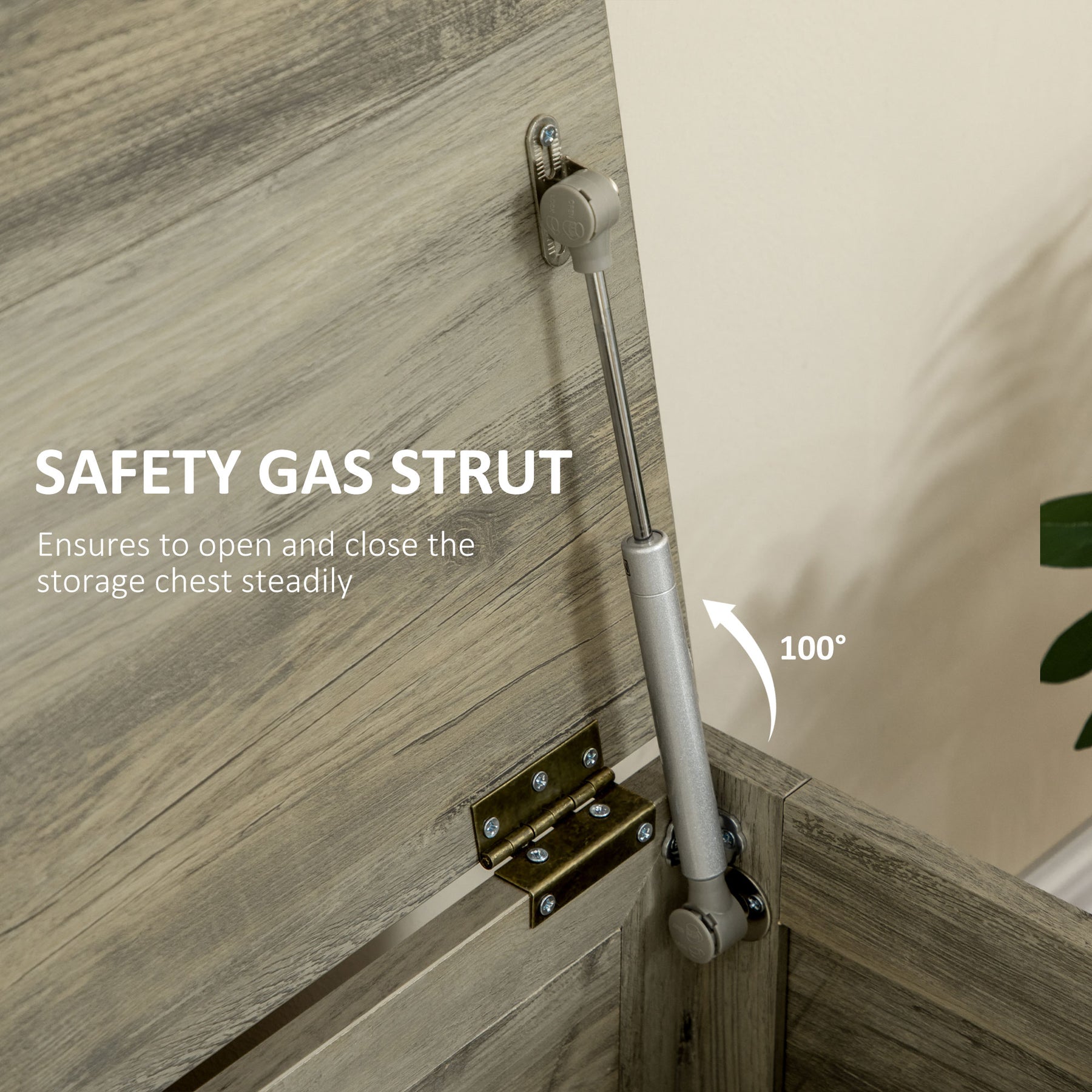 This storage box with a lid stands out for its rustic design, which makes it fit with various decorations. Features a large storage section for storing books, blankets, and more. Its versatile design makes it a practical entryway shoe rack, tool box, or storage cabinet. The wood grain effect surface makes this bench chest a great addition to your home.