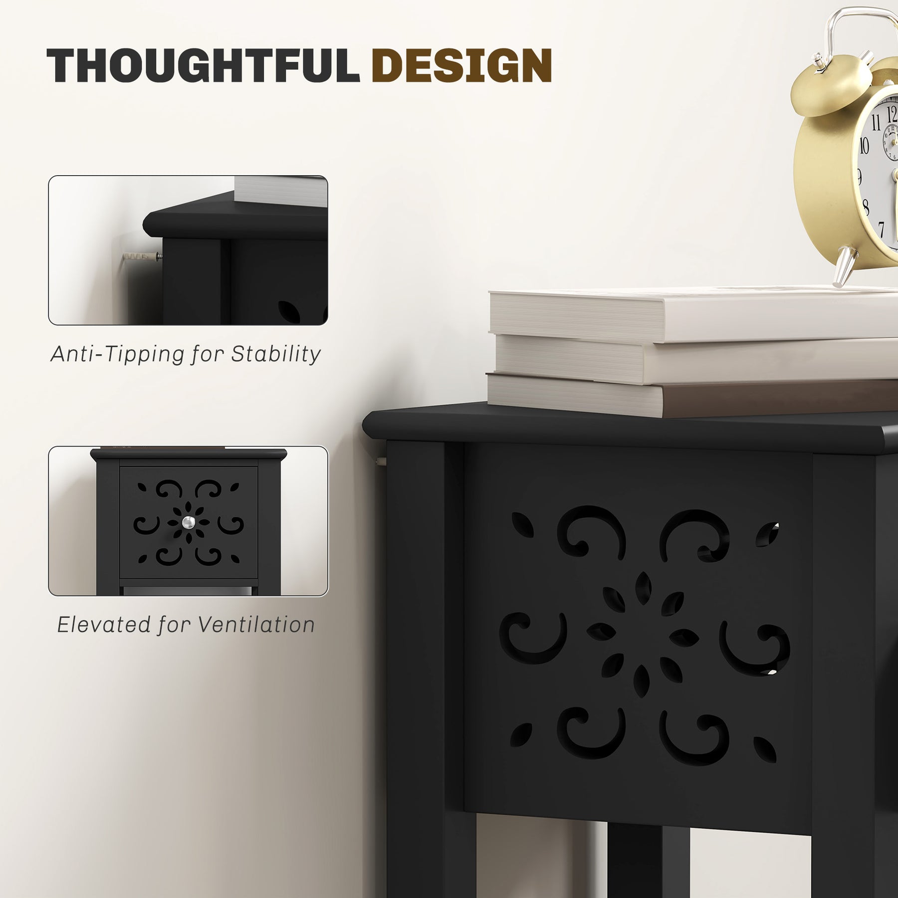 Transform your space with the HOMCOM nightstand set, featuring sleek drawers and open shelves to keep essentials handy and your home tidy. Whether used as a bedside table or a small coffee table, these versatile pieces boast elegant metal electroplated handles and an anti-tipping design for added safety, all while keeping style in check.