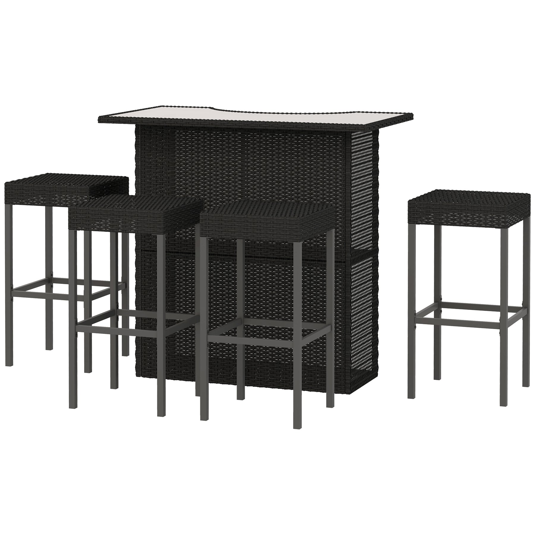 This complete set features 1 bar table with glass top and 4 bar stools for endless entertaining. Every hour is happy when you spend it enjoying your new outdoor patio bar set from Outsunny. It is made out of beautiful wicker material, it's weather-resistant and adds elegance to your space. The top of the bar is with thick glass, proving a surface to place the drinks on. It also contains a shelf which is convenient to store any drinks, mixers, or necessary tools.